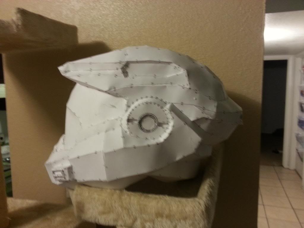 We will start with the helmet. I believe its the mark V B but i might be wrong on that. Overall it came out pretty well with only minor warping. I would have redone it, but im confident i can fix any little warping on the bondo stage. There is a chance i might just redo it, but well see how the bondo goes on.