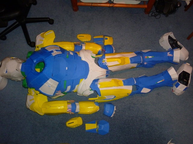 The suits roughly a 50:50 split between files from Darkside501st on the RPF and my own scratch building using the files and pictures as reference (scratch buildings a lot more fun). I've found 6mm foam and about 3 coats of PVA wood glue to be a good balance between strength and durability, and the whole thing clips together around me so it's relatively easy to get on and off with a second person helping. The intention is to have the whole thing essentially clip together into the one static part so it can be a freestanding statue when not in use. I just need to finish the codpiece to legs join to see if that idea can hold true.