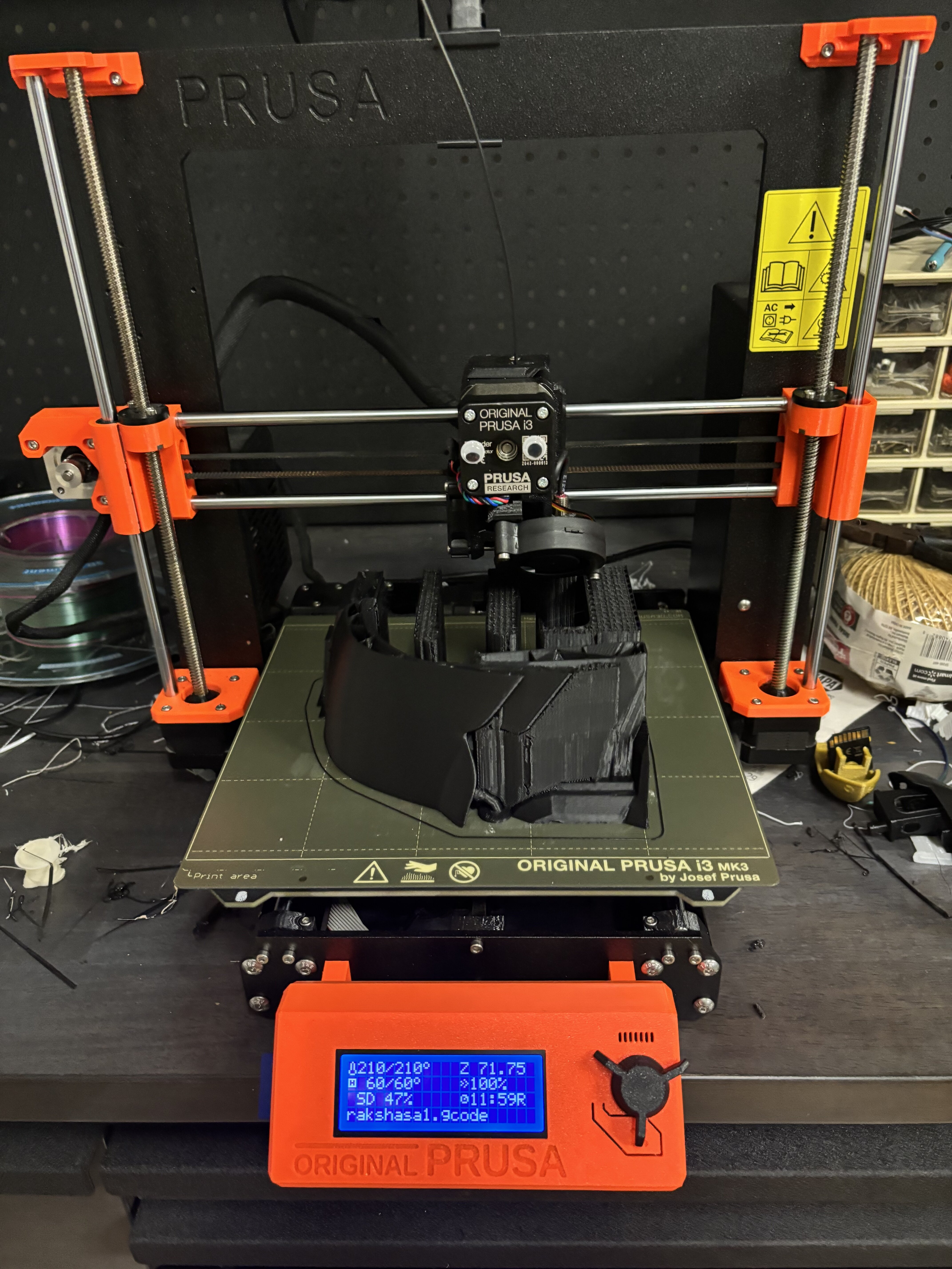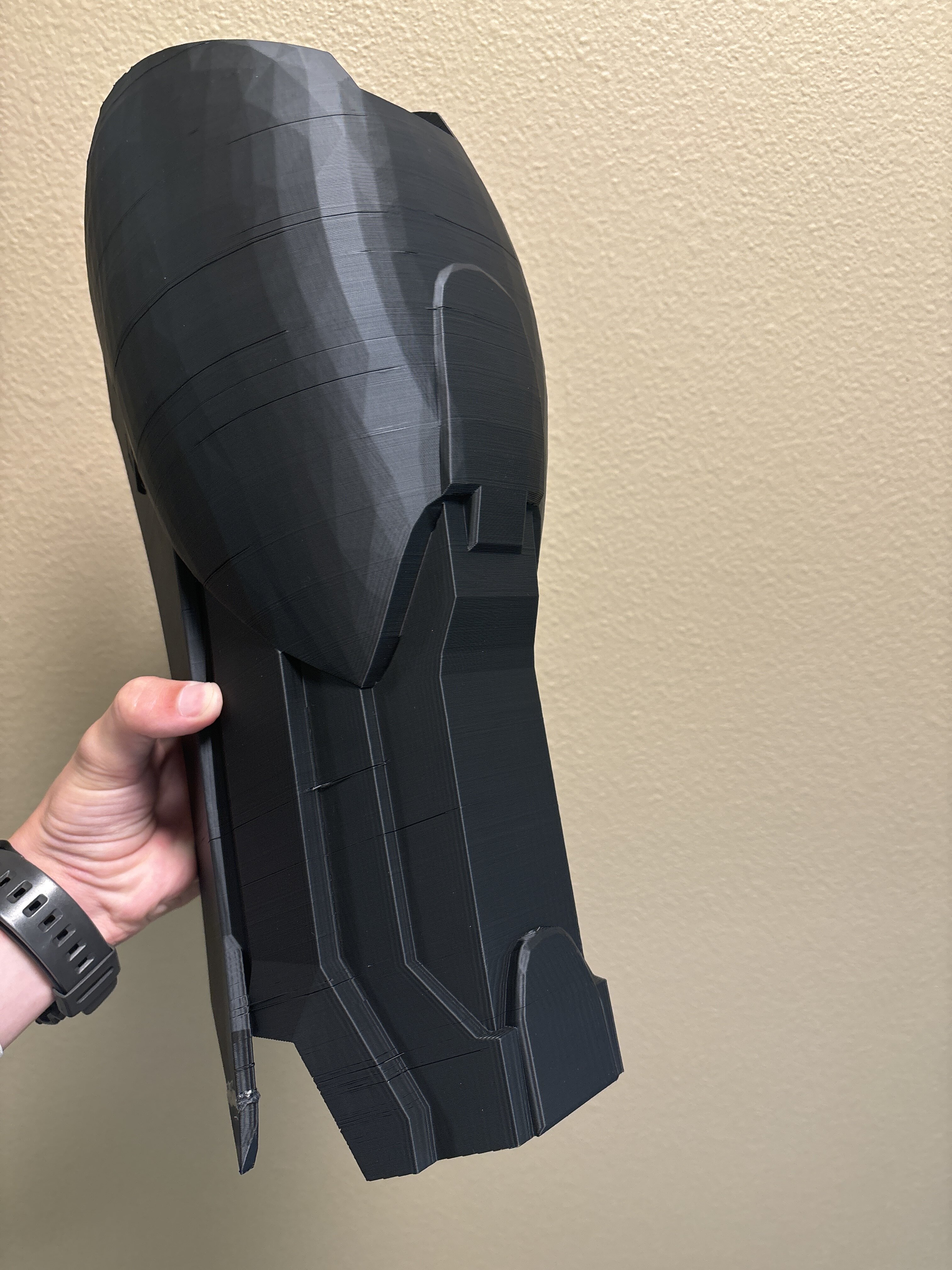 The printer I had at the time was too small, so I ordered an elegoo Neptune 4 max to print the parts on. When the printer arrived, I spent a week calibrating it and doing test prints before printing the shin piece for the armor.