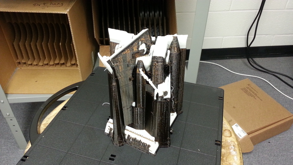 Keep in mind that we weren't just printing out the model itself either, we were printing out support material for the model as well, using a 2nd print head for it.