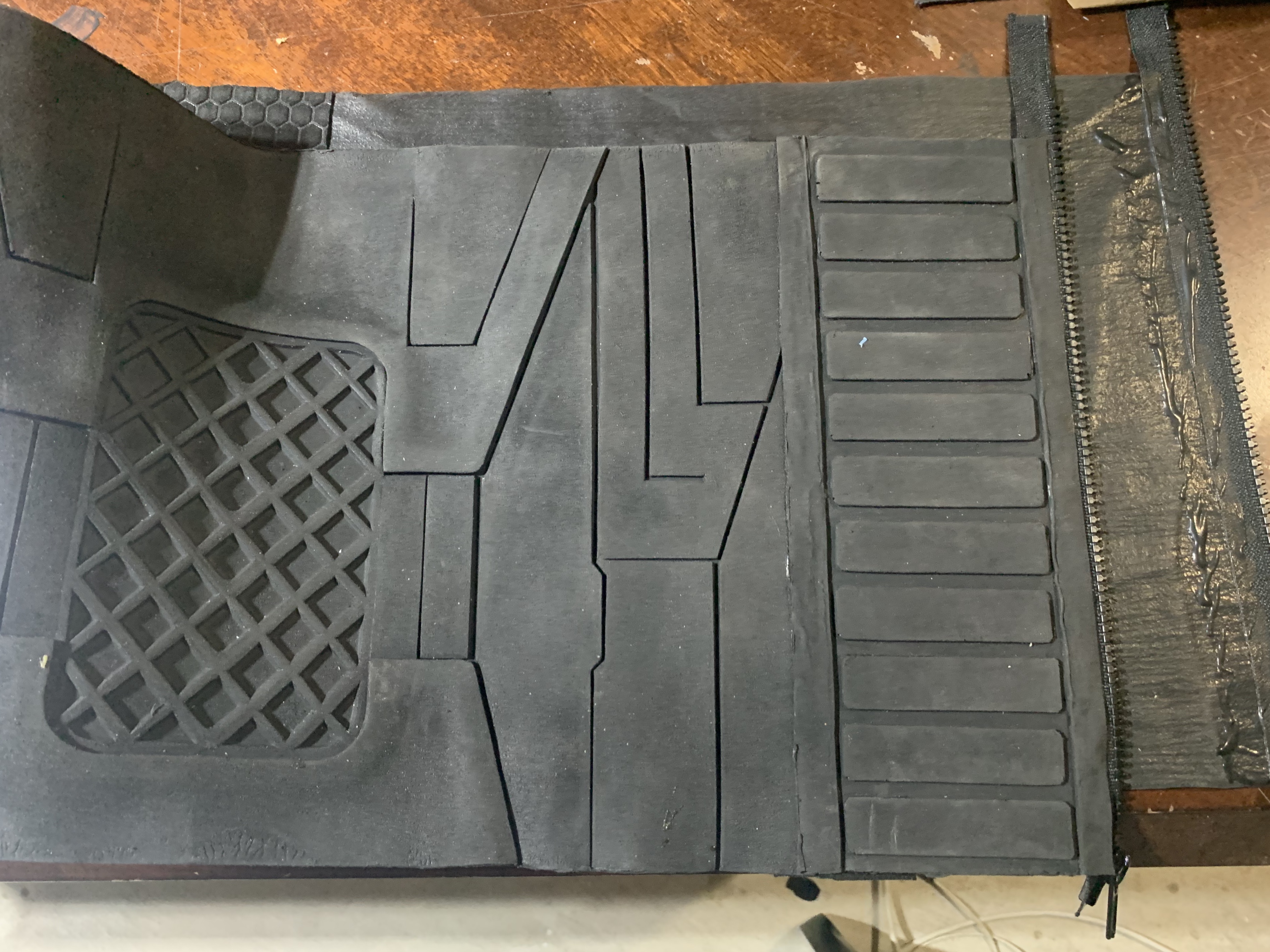 Midsection wrap is almost done, latex attaching the zipper is almost dry.