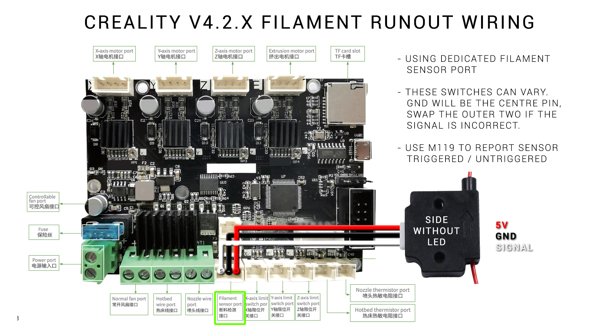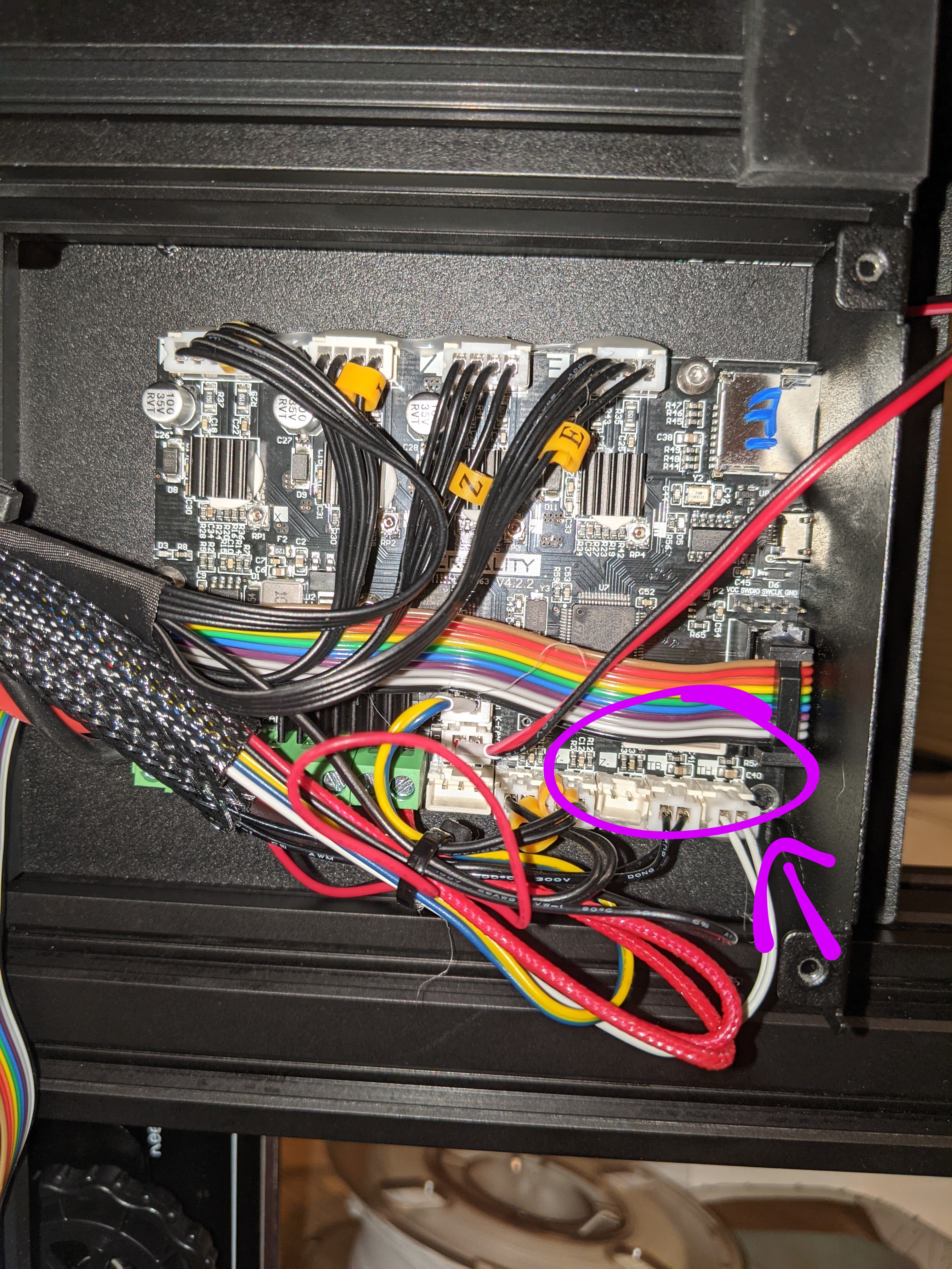 I finally got a new fan for the hot-end and installed it. The original obnoxious noise is now taken care of. While installing the new fan, I took a moment to look at the wiring labeling on the back of my board. I also know now how to install the new runout sensor. Havent done it yet, but I was going to print the mount first...