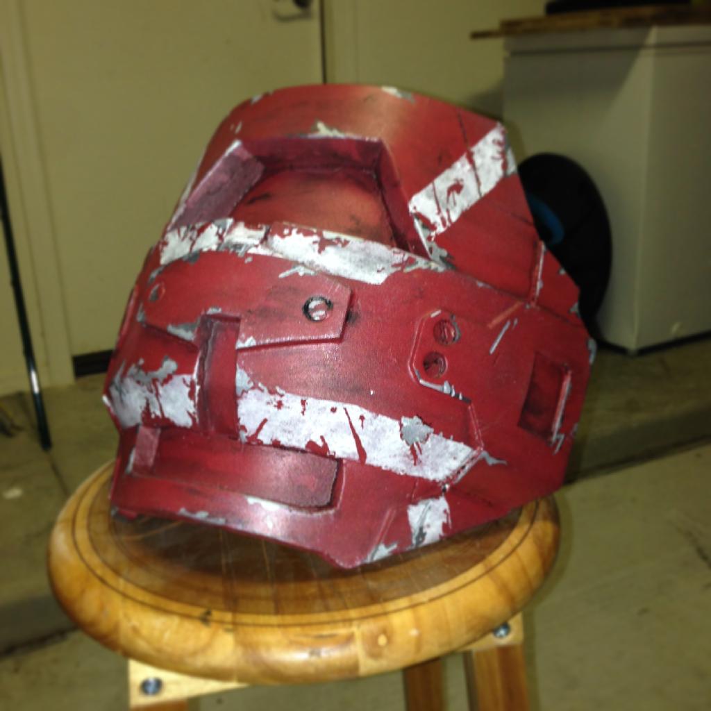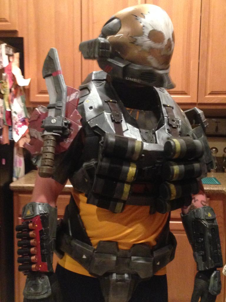 Excellent work on this entire build. I really like the shoulder attachment and the helmet. Not sure if you've thought of this or not, but you can use one of your scrap visors you've successfully painted, and wet sand the outside lightly with 1500-2000 grit sandpaper to see if it will dull down the exterior to make it look a little more like the in game shots. Just a thought. Either way though, it looks killer! :D