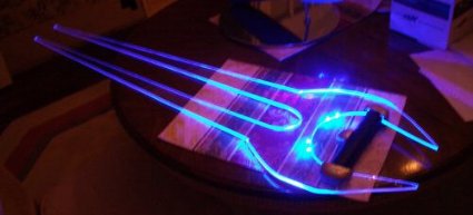 Okay, so for my first costume, I plan to build an Energy Sword, one of my favorite Covie weapons. And I just HAVE to make it light up! I'm going to buy some blue LEDs, but I don't know how to get them inside the sword. I don't know what material to use to make it clear and have LEDs inside it. If nobody knows how to do this, then I'll use my other idea. I'll make a sword out of Styrofoam or something, then add a little bit of blue spray paint (a light blue) and make it fade as you go down the blade. Then I'll wire the wires down the blades, and put the LEDs on the sides, and have both wires connected to a battery in the handle. Then, to finish it, I'll wrap it up in clear packing tape, to make it look even better, and protect the LEDs.
