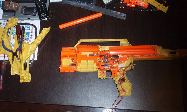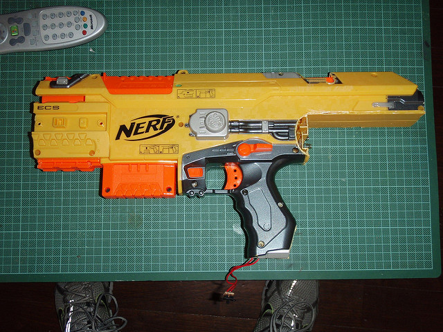 what ever you do, don't use a lypo with plastic. those batteries have been kown to melt full metal airsoft internals, and nerf internals are no exeption.