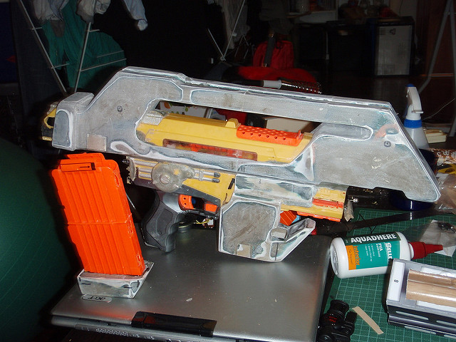 Wow man this is looking utterly amazing, the Stampede is already an outstanding nerf gun and you've made it perfect. Wondering how well it fires and how much it weighs with all the fiberglass added to it. Also, are you thinking of adding a grenade launcher to the bottom? Because you could get the Longshot and cut off the shot-gun style extra gun on the front and add that to this gun which would look and work quite well