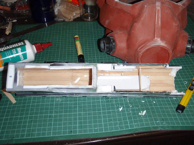 Ok now on the to-do list i will cut out aluminnium brackets (front and back) to allow everything to be screwed together. I will also make a template for the barrel bracket and the rear stock (I think ill make something attach as the battery cover).