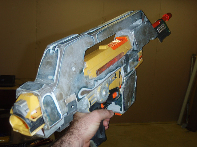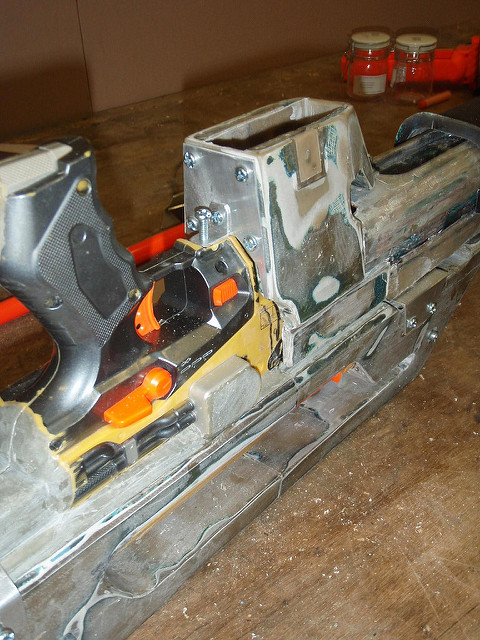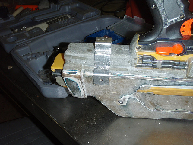 Opps! Got home very late/early and dropped it on its ass. Its a nice clean break where i dremeled everything down to fit the rear of the gun. Ah well, on the upside its gonna be tough as nails after i finish with it.