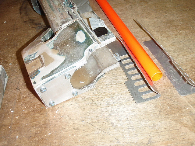 And started working on the barrel bracket and vents (almost as bad as sanding...). Note the new nice long barrel. The front gun will not ever be used as it was intended so... why not