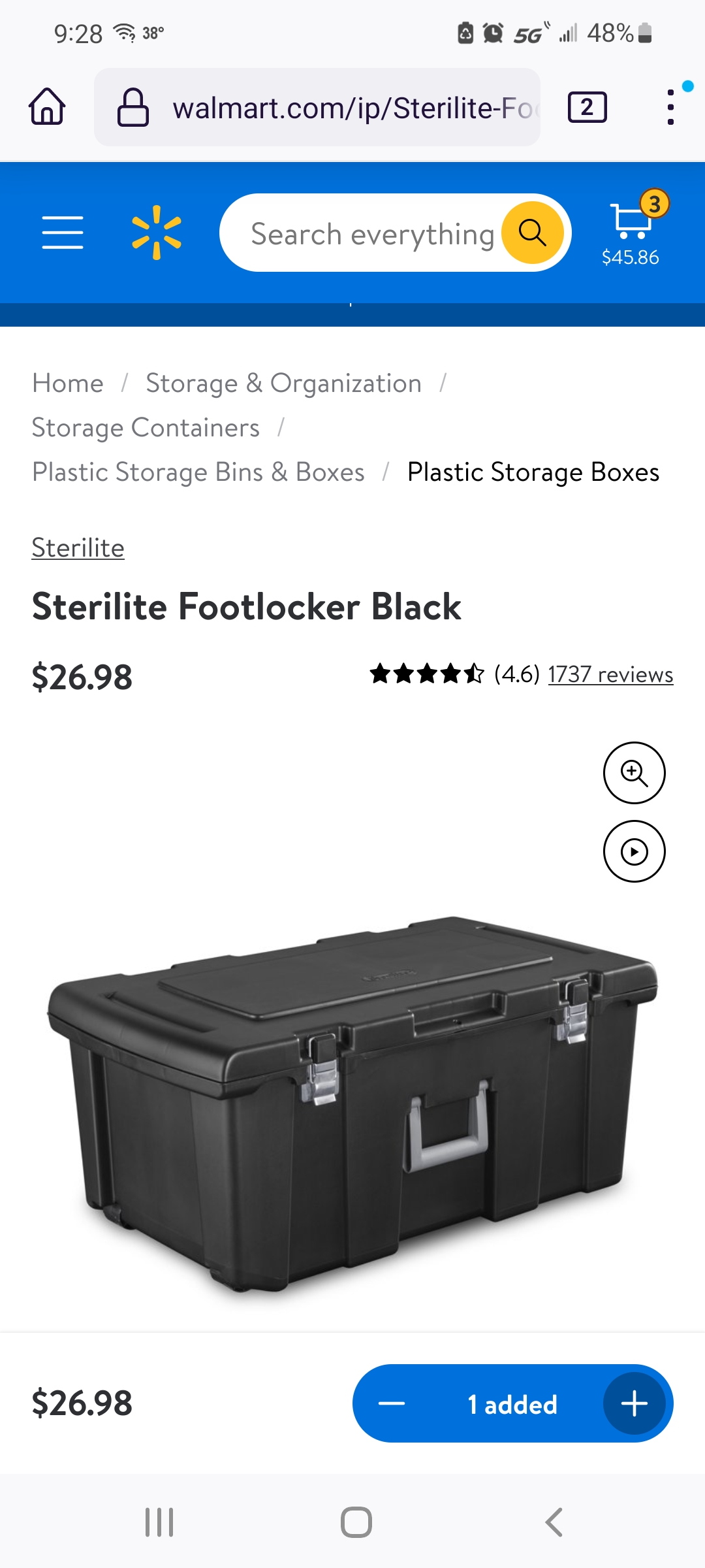 1. The Sterilite Plastic Foot Locker with Wheels - 31 1/4" x 17 5/8" x 13 7/8" and retails for around $30.00 USD