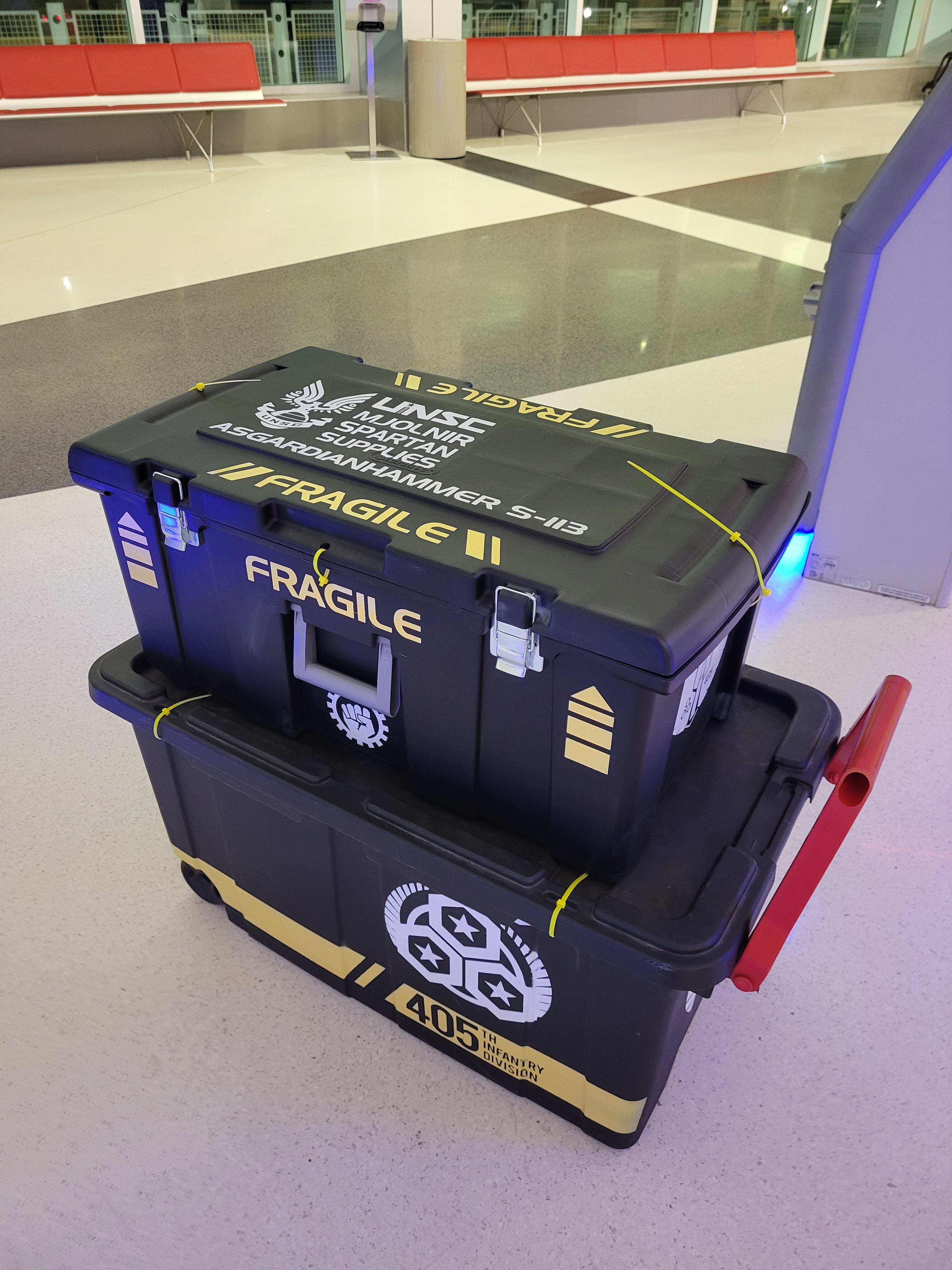 On the whole my armor has flown across the country and back with no issues. Not paying an additional charge to ship what i thought for sure would be oversized was a huge cost savings. The more professional you can make your gear look while in storage and traveling the less likely it will be mistreated. That is not to say that will always be the case.