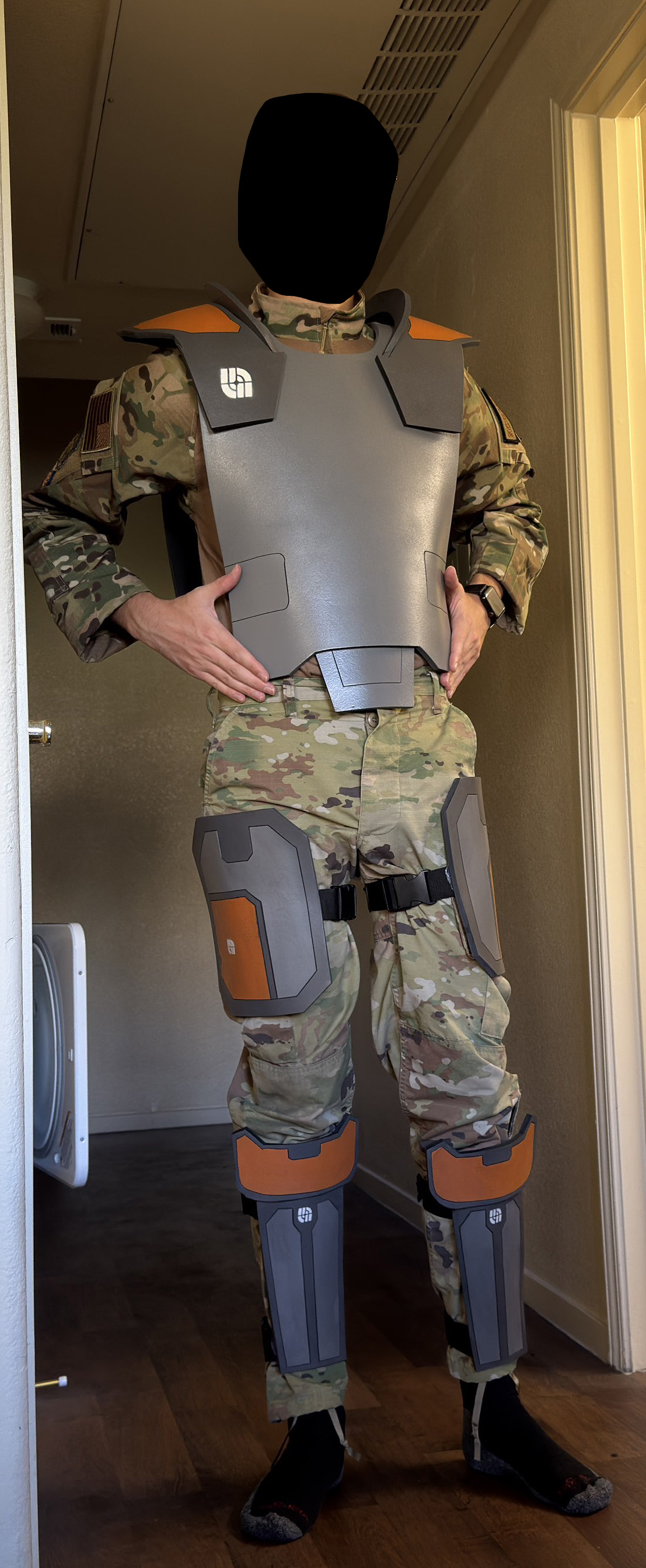 Currently working on the chest piece and shoulders. The chest still needs some detailing and some more painting. Still need to figure out how to make the collar for the chest. Shoulders need to be mounted properly.