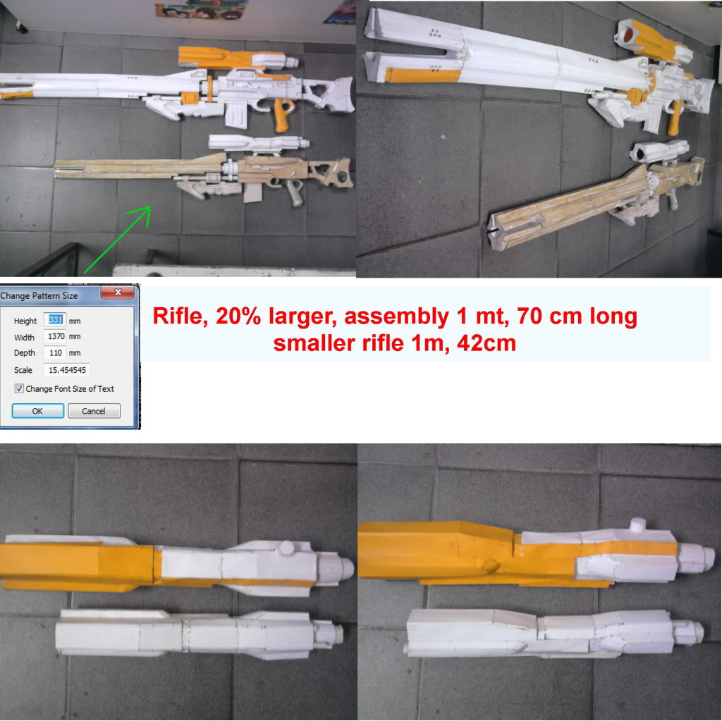 Well the biggest is certainly impressive and attracts attention, but it demands a lot of material to finish it in a matter of convenience I prefer the smaller, we must take into account the rest of the armor, the helmet vision is very limited and with such a rifle would be something like a very clumsy movements, not want to hurt someone who is at my side turn ja ja ja