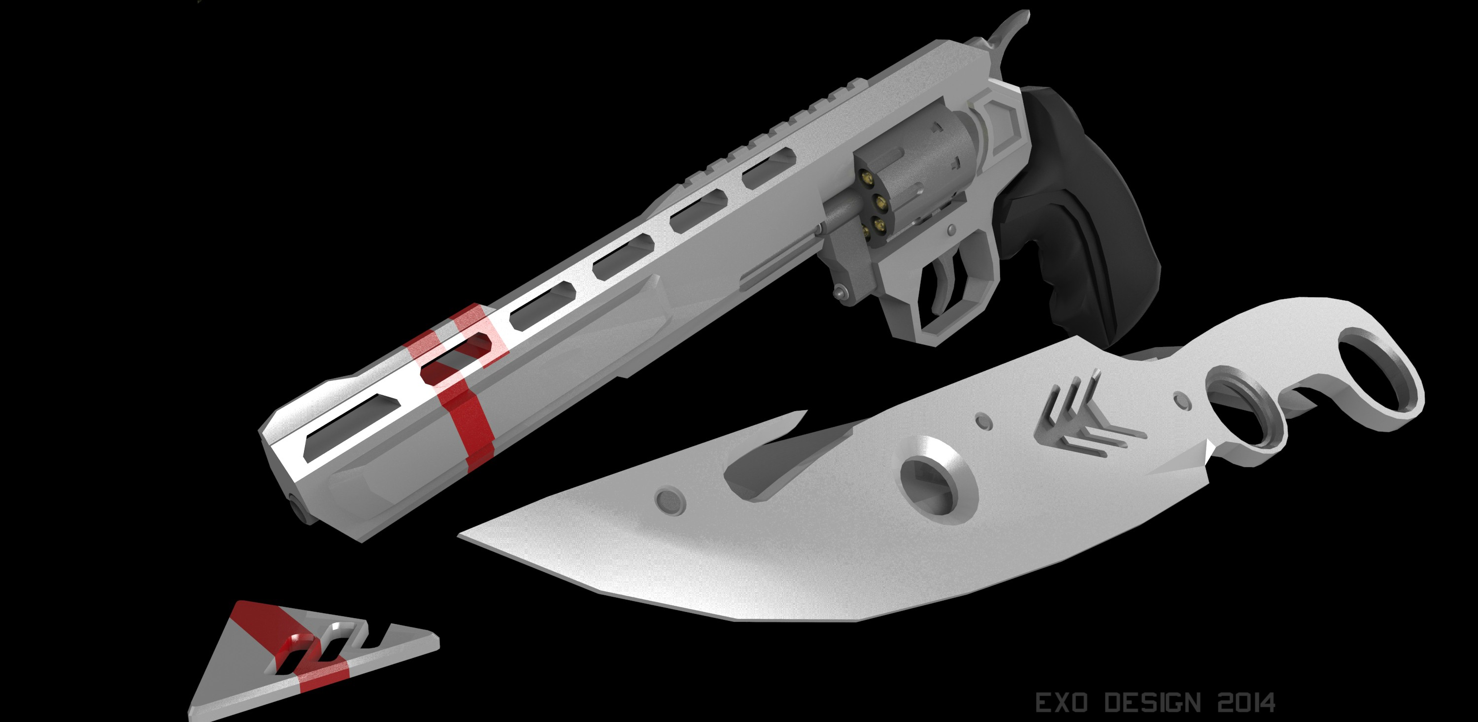 And before anybody says something about that rifle I had modeled; Yes, the design is based off of the G2 Feline FAMAS concept rifle. What can I say, I just loved the design so much that I had to make myself one for my Titan cosplay as well! The revolver, knife, Ghost, and Titan armor are all still in the works but here is what I have so far.