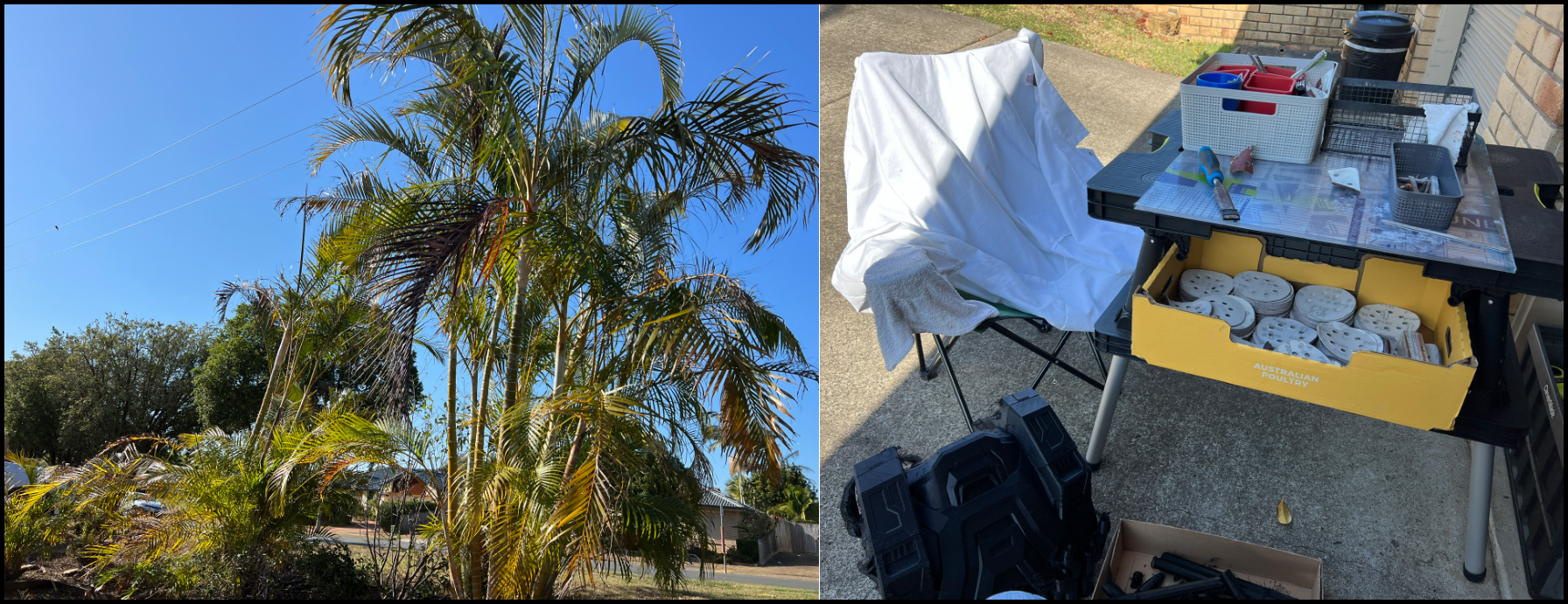 So there was sanding until it looked pretty good. Then a light dusting of primer to highlight all the issues, pits and so on. A spot filled here and there. Sanded. And another primer. And final photos of the day before loosing all the sun light.