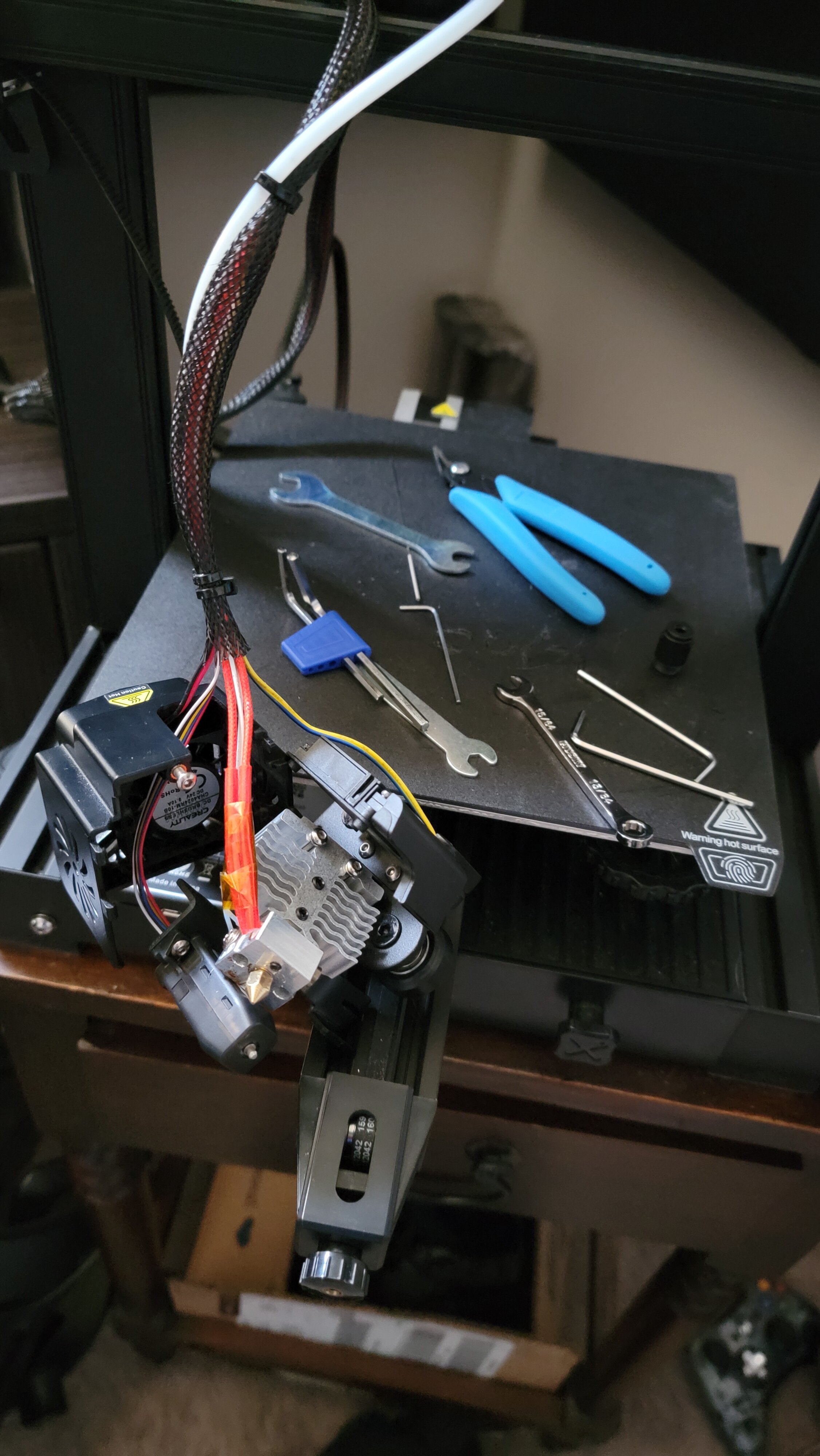 After some Amazon review reading and figuring out how to disassemble the hotend. I found a part to replace the block and ordered it! (Also ordered and upgrade for my CR-10s that I will try and also use for this project) After waiting hopelessly for 2 days I finally got my part and was ready to install! After getting my tools ready once again and opening the part.. I tried installing it when I ran into a problem.. my thermistor didnt work with this block..