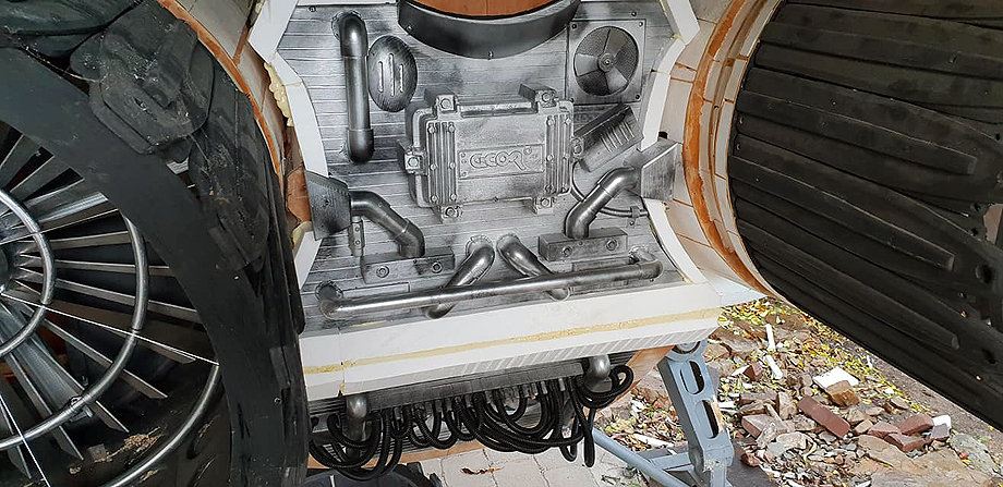 Thanks to my friends Tony Celliers of Dynamic Digital Creations for the 3D file, and Mark T from Tharwa Valley Forge for modifying said file, then CNC routing it out of a random bit of biscuit-joined wood. After a glue together and clean-up, it painted to look pretty darned good.