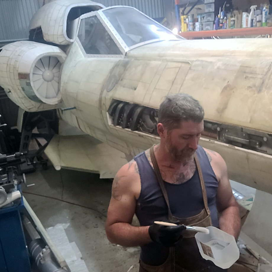The rest of the ship has been filled in with loose/broken panels, gaps and alignments and sanded in readiness for fibreglassing. All the fibreglassing materials are now here.