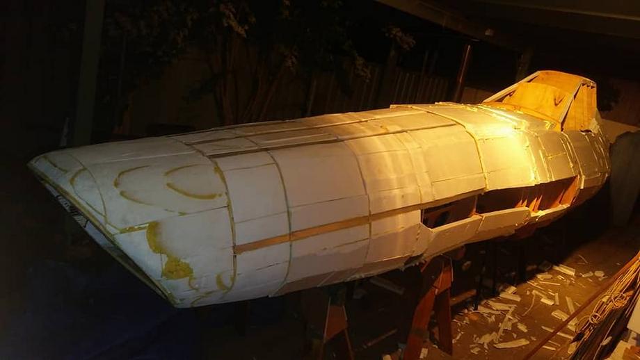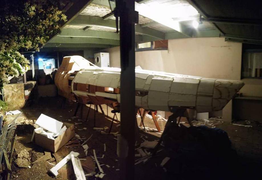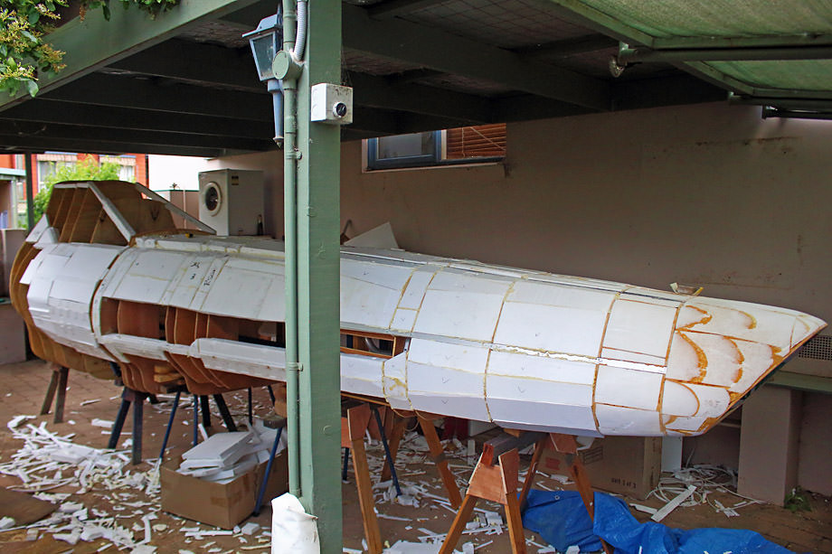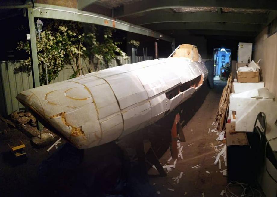 I got a lot more skinning done today and started trimming and shaping it a bit. It's so bloody BOORRRIIINNNGGG! So, I started putting the floor and interior walls in the cockpit to keep things interesting. A mate came over and asked me to modify his wheelchair, so that broke up the afternoon nicely for me. Cheerin'