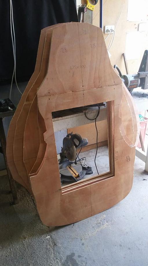 Again, I found it a big money saver to use cardboard first to freehand the shapes and fit, then transfer to half inch plywood once I had established the form. I'll add in small details later, but that's the main construction finished. It was quite a challenge.