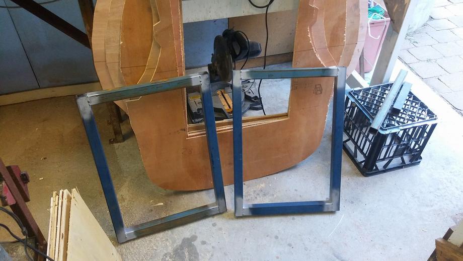 Starting behind the cockpit firewall and continuing for another 3 metres, is the last parts of the fuselage that the three main engines will attach to. Again, I am using plywood formers, spaced and supported on a rigid welded steel frame.