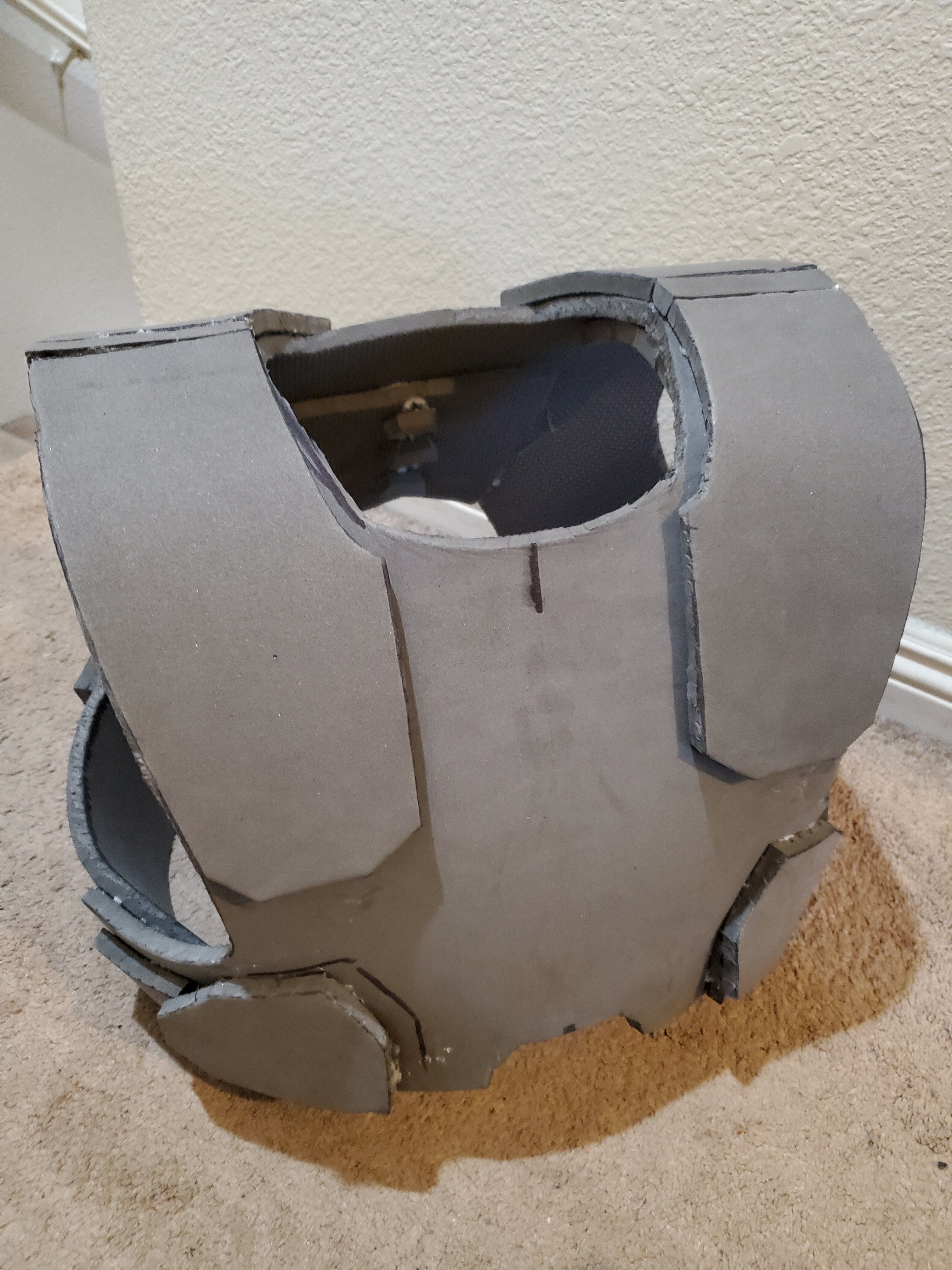 I put an extra piece of foam to widen the chestplate so I could fit in it... once again shouldve measured and checked sizing/fitting etc before gluing together but here we are...