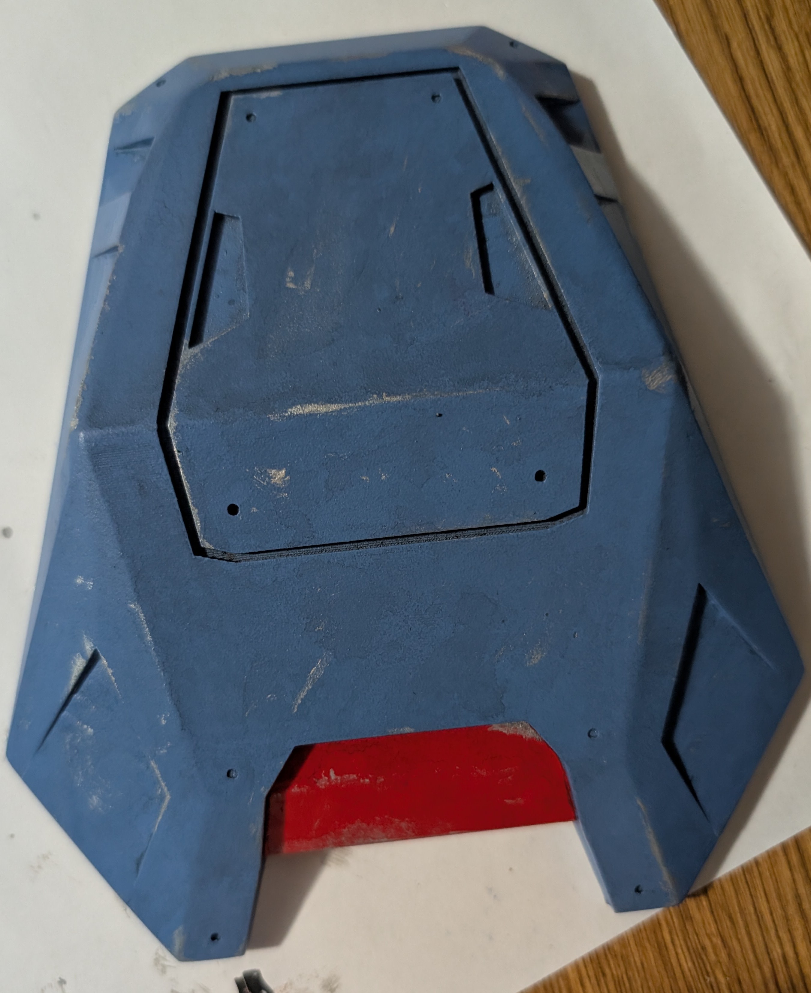 Disaster has struck. I was painting the helmet today and while letting it dry I left it in the sun. I had it sitting on an old broom stick and it melted leaving a pretty big dent (kinda looked like a bump on the head). I've done some surgery on it using an old spoon so it should be salvageable. There's also some smaller melted areas.