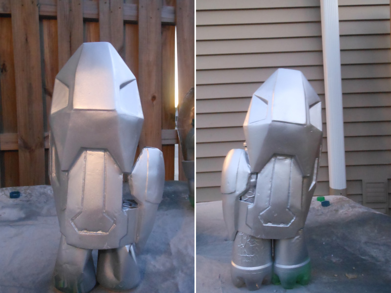 Tomorrow I'll be out of town, and back on Sunday (hopefully with my lost LEDs for my thighs). On Sunday evening I'll be doing the final sanding of the biceps and giving them a coat of primer (possibly a coat of silver too depending on how clean they look after the primer). After the sun goes down on Sunday, I'll start to work on the lights for the thighs and get those completely finished.