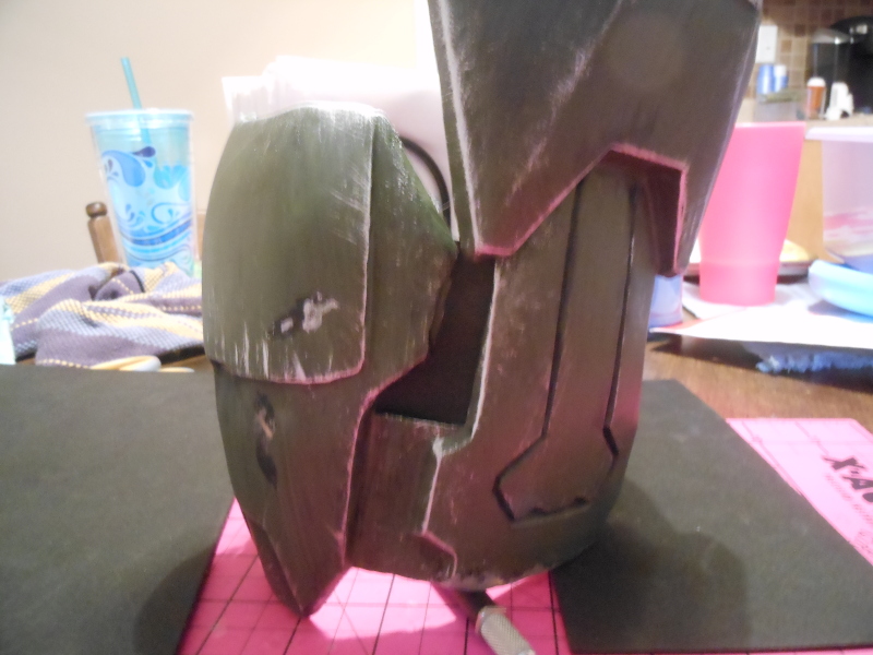 Then I wiped away the vasoline and reapplied, and finished it off with the Italian Olive armor color...