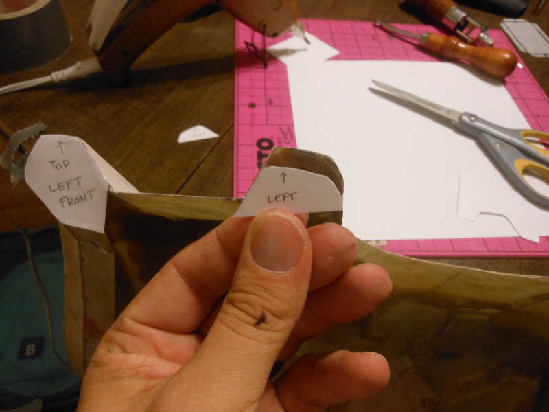 So, I set about creating the mounting points for the magnets. To start, I traced out some cardstock over the openings of the connections points...