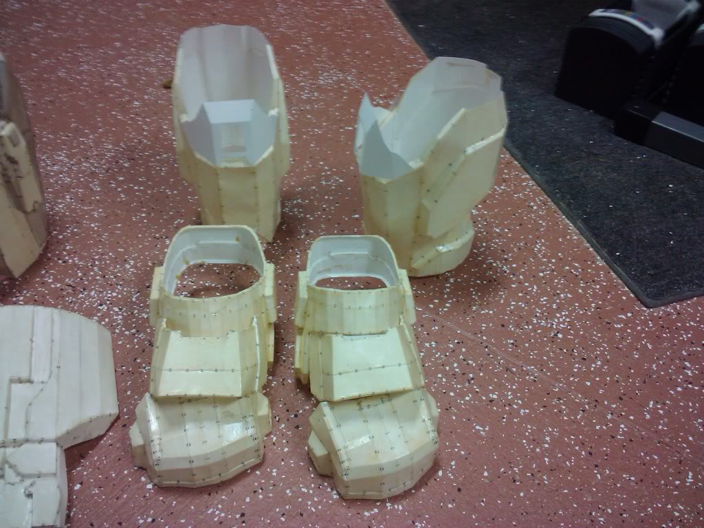 and more there is! i was able to finish hardening some of my pieces so far i finished almost both boots (one is done) both arm plates and both knee guards. here's my update pics! enjoy!