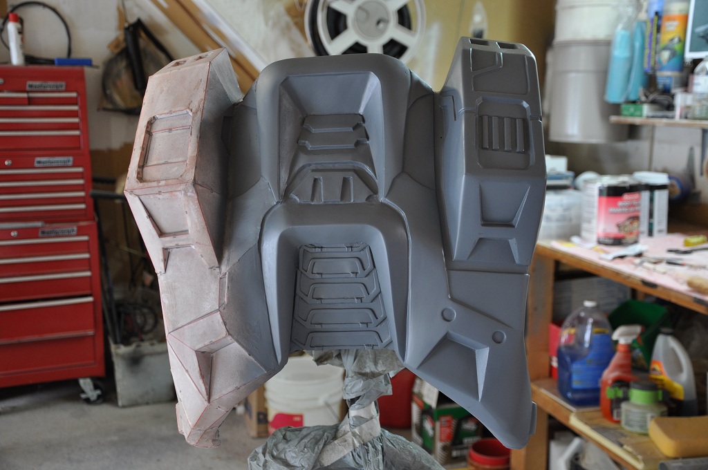 Once everything was nice and dry, I hit the center and right side with a coat of primer (have been dying to do this!)