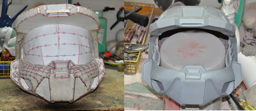 Man I can't wait to see what you do with that damage when you get to painting! The front looks wicked better, friend! My dad was wondering, so I thought I'd ask for him, how do you cut out like on the underside of the chin without going through, but still get the edges so smooth?