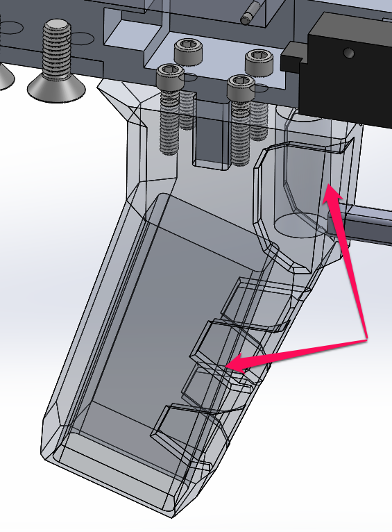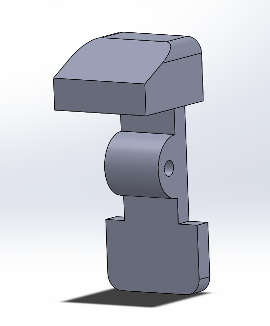 I also worked on figuring out how to get the mag catch to work. A spring will hold back the release grip on the bottom of the receiver which will hold the piece sticking into the magazine in place. By pulling the grip towards the buttstock, the catch will slide out of the magazine and the magazine will be removed.