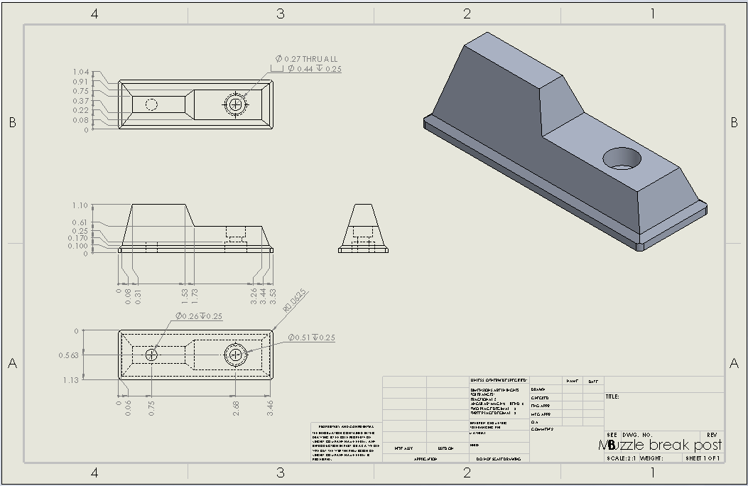 Other than that, I've modified some other parts. I poked some holes into the muzzle break and the barrel so that those can be machined and assembled reasonably.