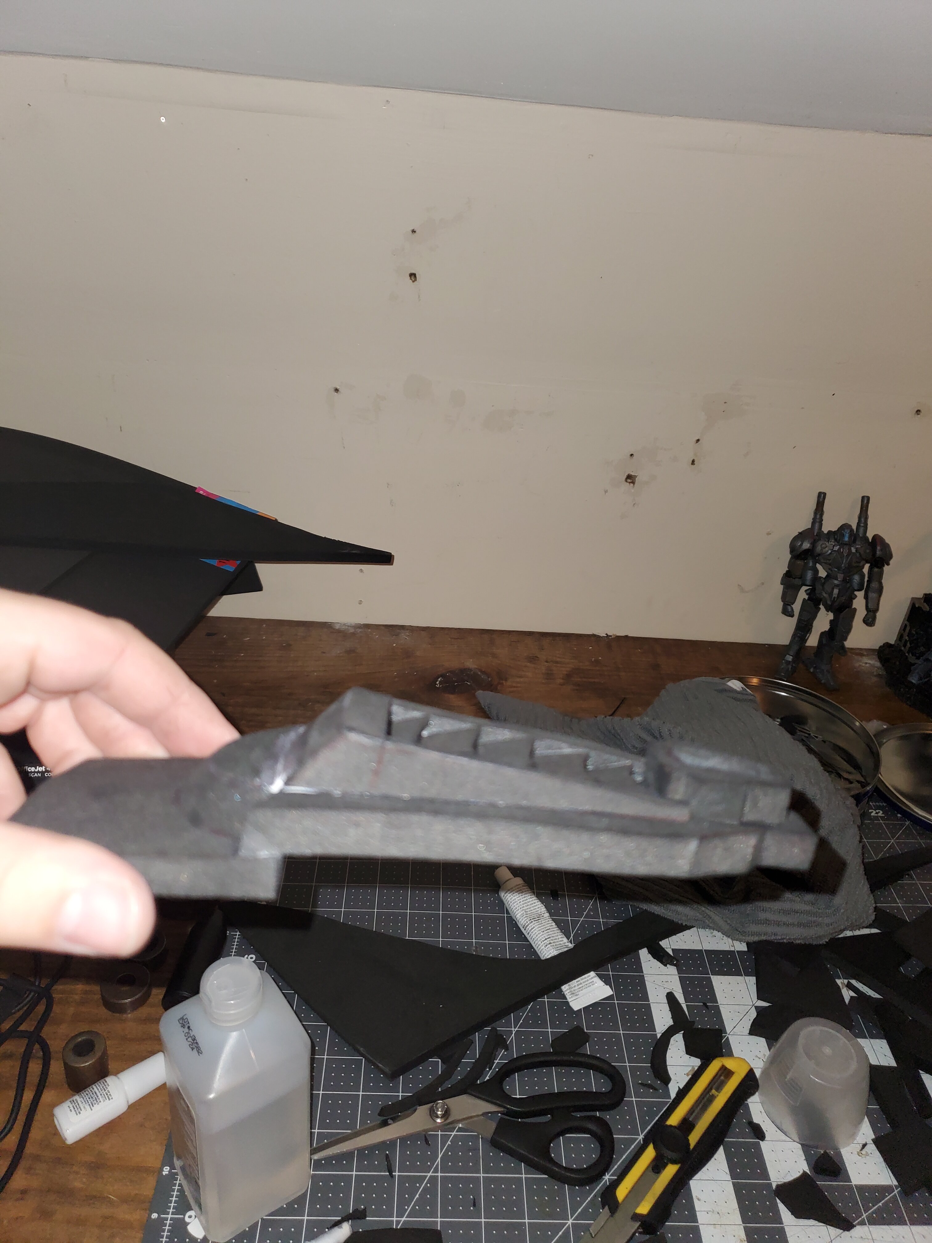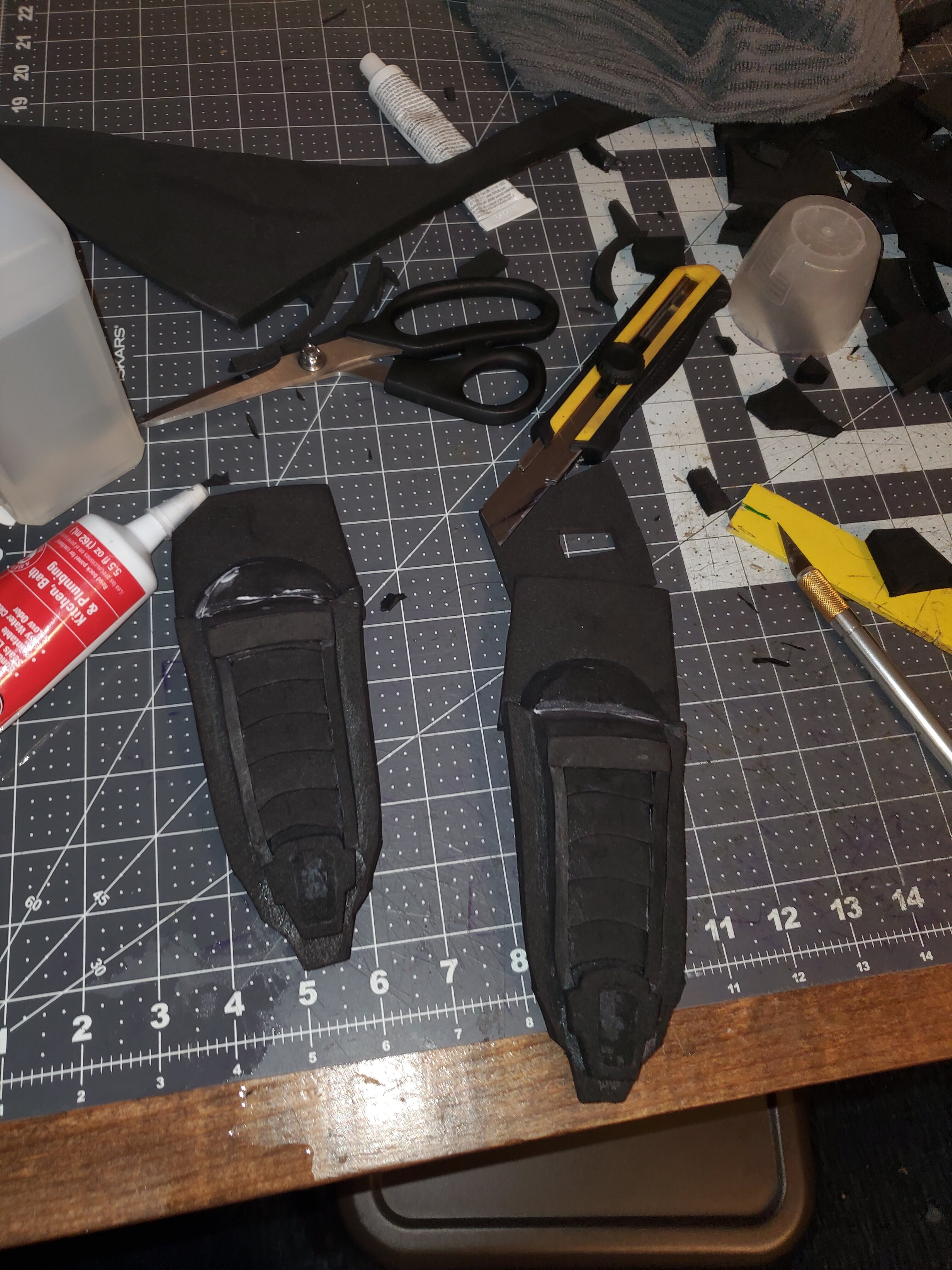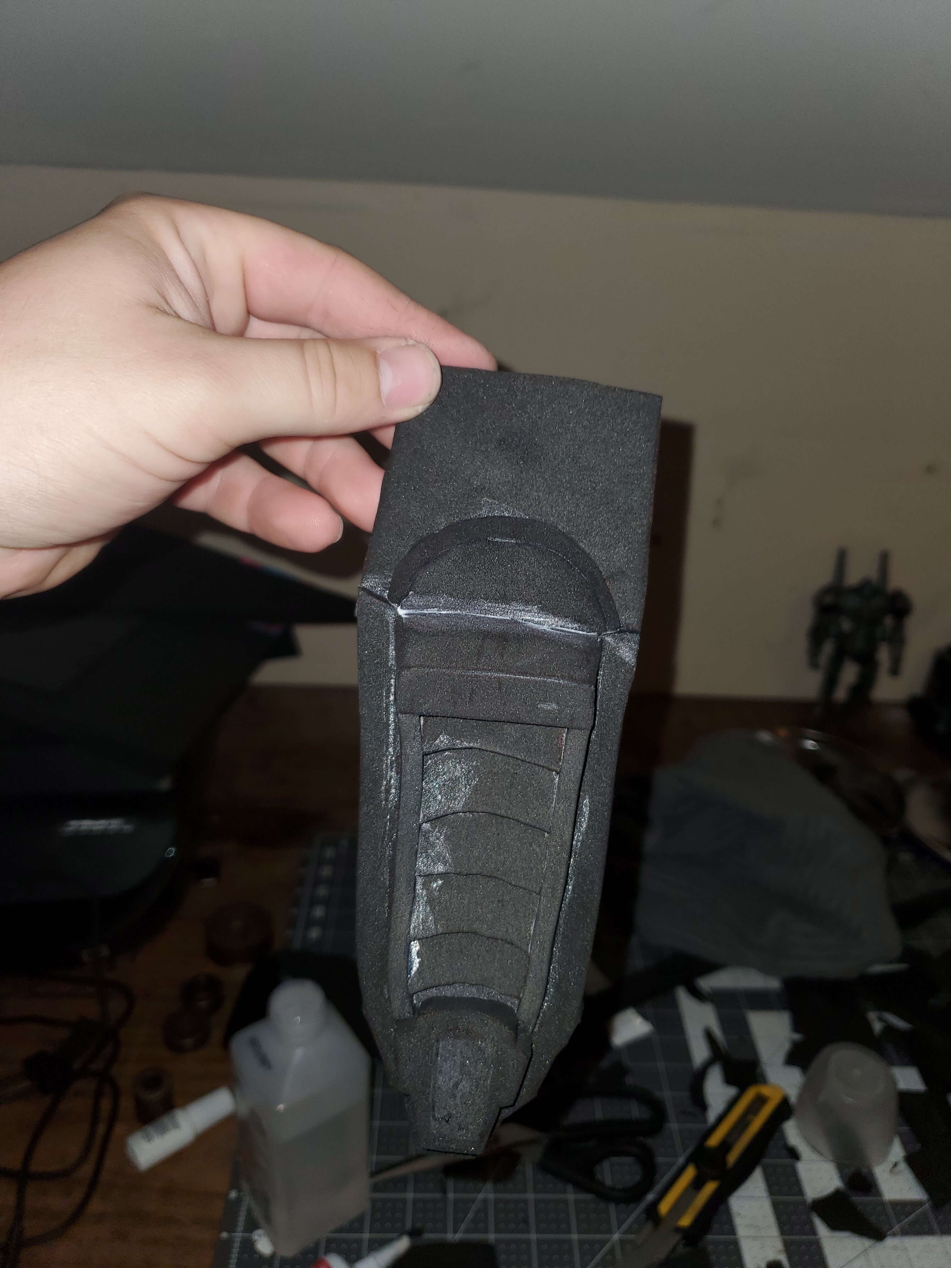I have been busy and burned out on these damn odst gauntlets, I made a mini armory of failed attempts, 6th version I'm going to melt the insides to try to get the same curves, I also strangled a failed gauntlet, quite satisfying! Anyway progress pics on the way, ooooh also been adding more silver stuff on my chest, I'll add a picture on the next pic.