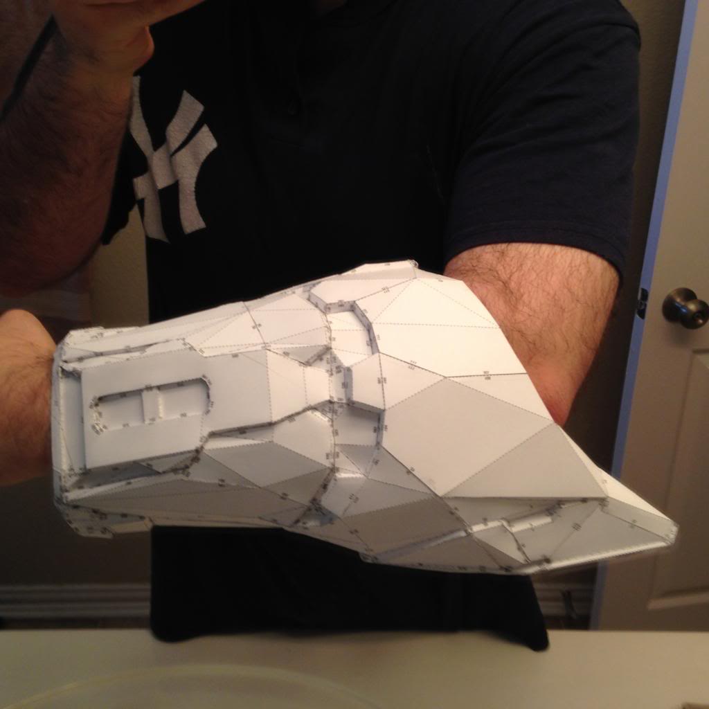 Greeting 405th family. I have been long time member and reader of 405th but never a poster. After about a year of reading, tinkering and practice I am finally ready to attempt my own halo armor. I have chosen the pepakura method of building and am pretty pleased with my complete pieces so far. I am doing the halo 3 armor (Mk VI) and hope to complete it this summer. As you look below and follow along with my progress, please feel free to critique, criticize and offer advice. All input is welcome and I reserve the right to disregard it if I want! I have completed the right hand guard, forearm, shin and thigh. Currently resizing the bicep for the third time and hope to finish this weekend. Enjoy and happy commenting!!