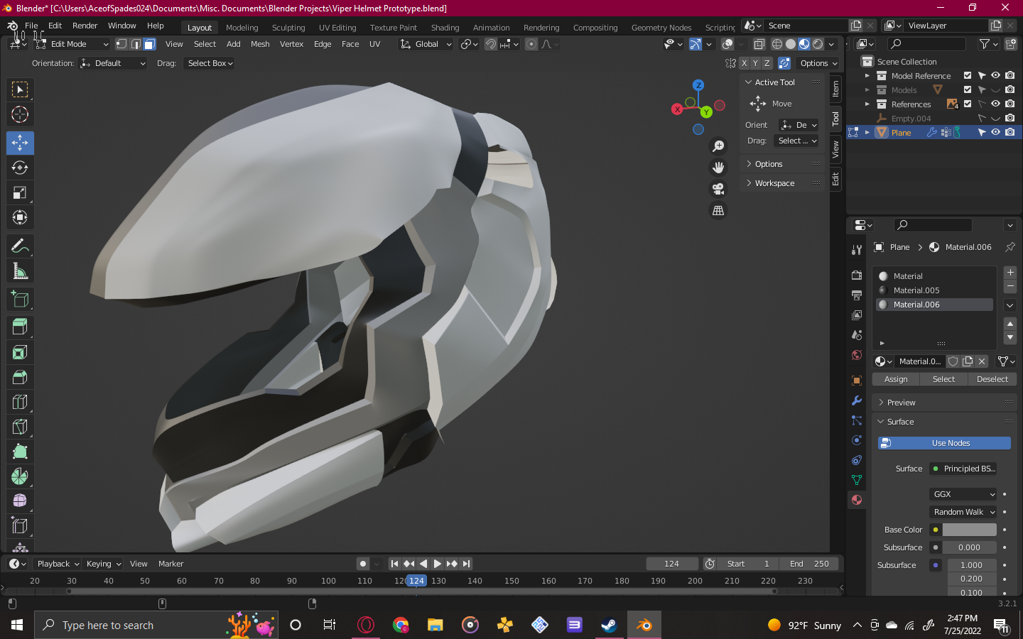 I began by commissioning additional references for a Viper helmet redesign created by @Wernissage - The Art of Halo on YouTube, which I then began to hard surface model using Blender.