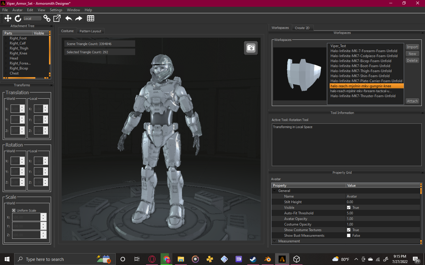 Now It's very low-poly as of now, but I'll be using it as a proof of concept for the full armor set. Now I've allocated Mark VII Pepakura files from The Armory, which I've accurately sized using the Armorsmith scaling program.