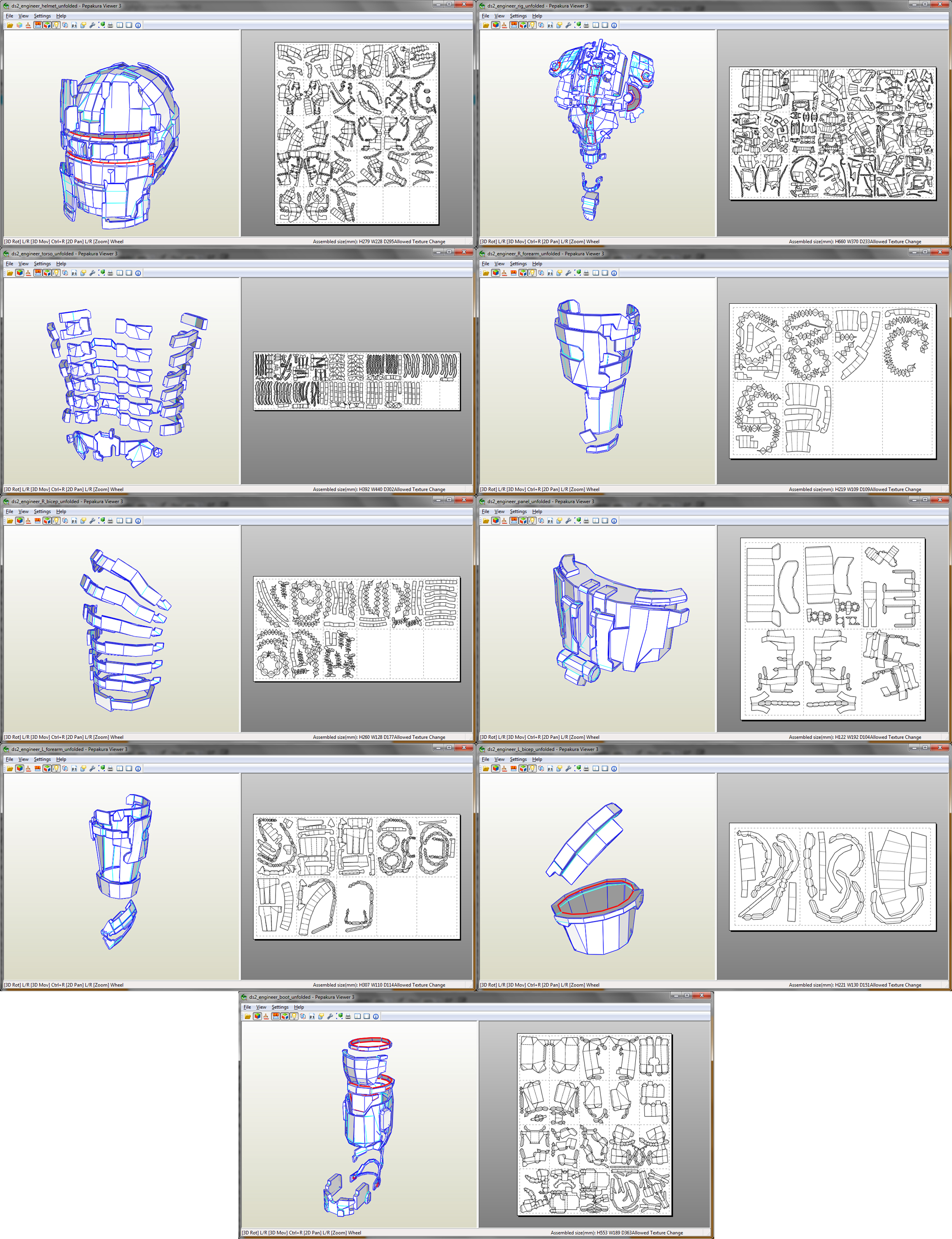 I'm not sure how many are in need of these but I still get messages for the files to this day here and there. I HEAVILY SUGGEST MAKING THIS OUT OF FOAM and using faces as templates to trace. Or perhaps make one and use molding techniques. I mean making each chest piece out of paper is a nightmare that I wouldn't wish on anyone lol. ALSO FOR THOSE INTERESTED, this is a model from the game I cleaned up for real life application (game model had intersecting meshes and strange polygons) so it doesn't get more accurate than this.