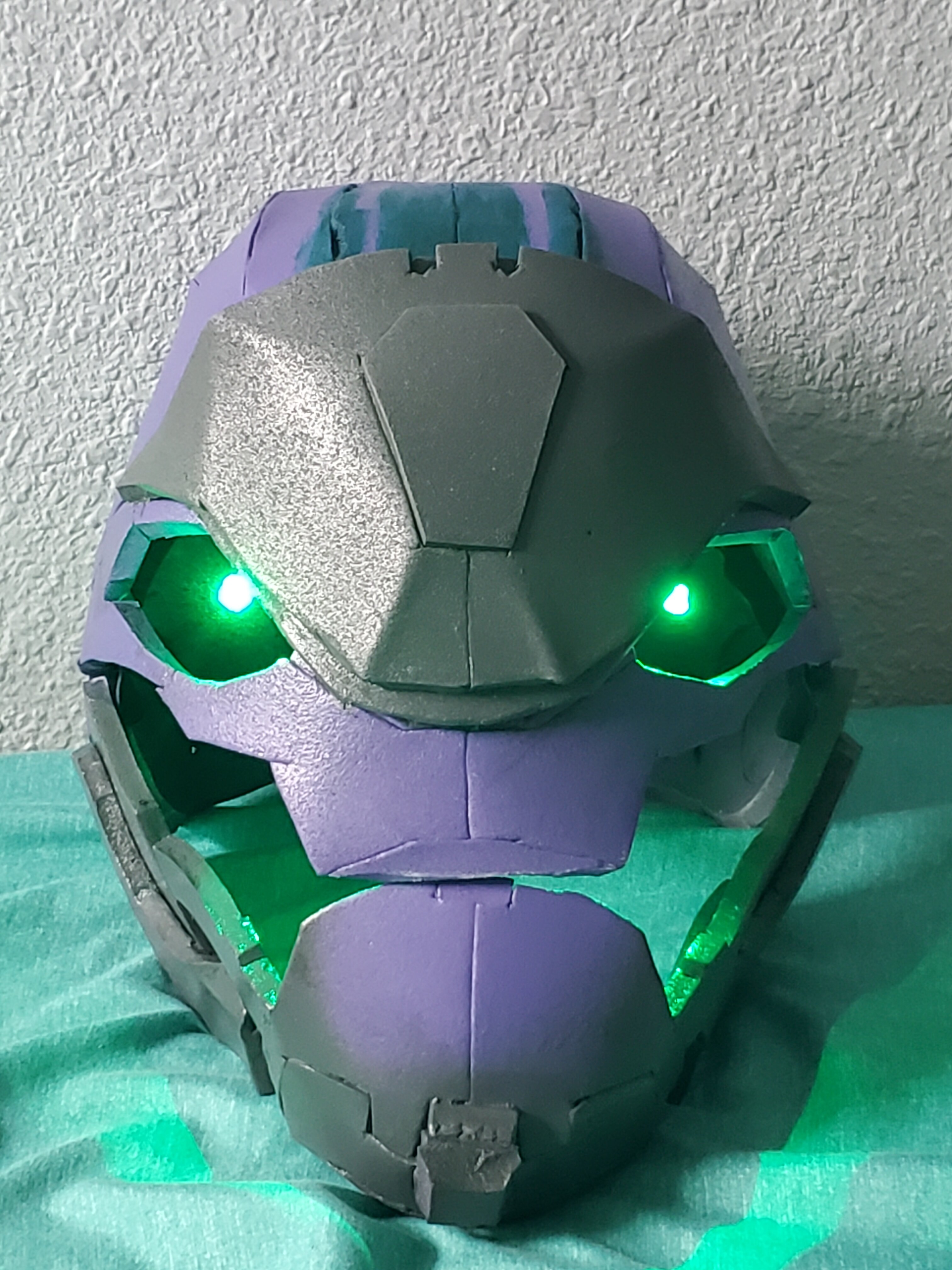 Next I need to make the forehead attachment. I also ordered some smaller green LEDs for the eyes. But I have a problem that I need help with. The mouth LEDs... on game they only light up while the player character is talking... idk how to do that so if anybody has and recommendations on how to make the mouth LEDs react to my voice It would be greatly appreciated :D