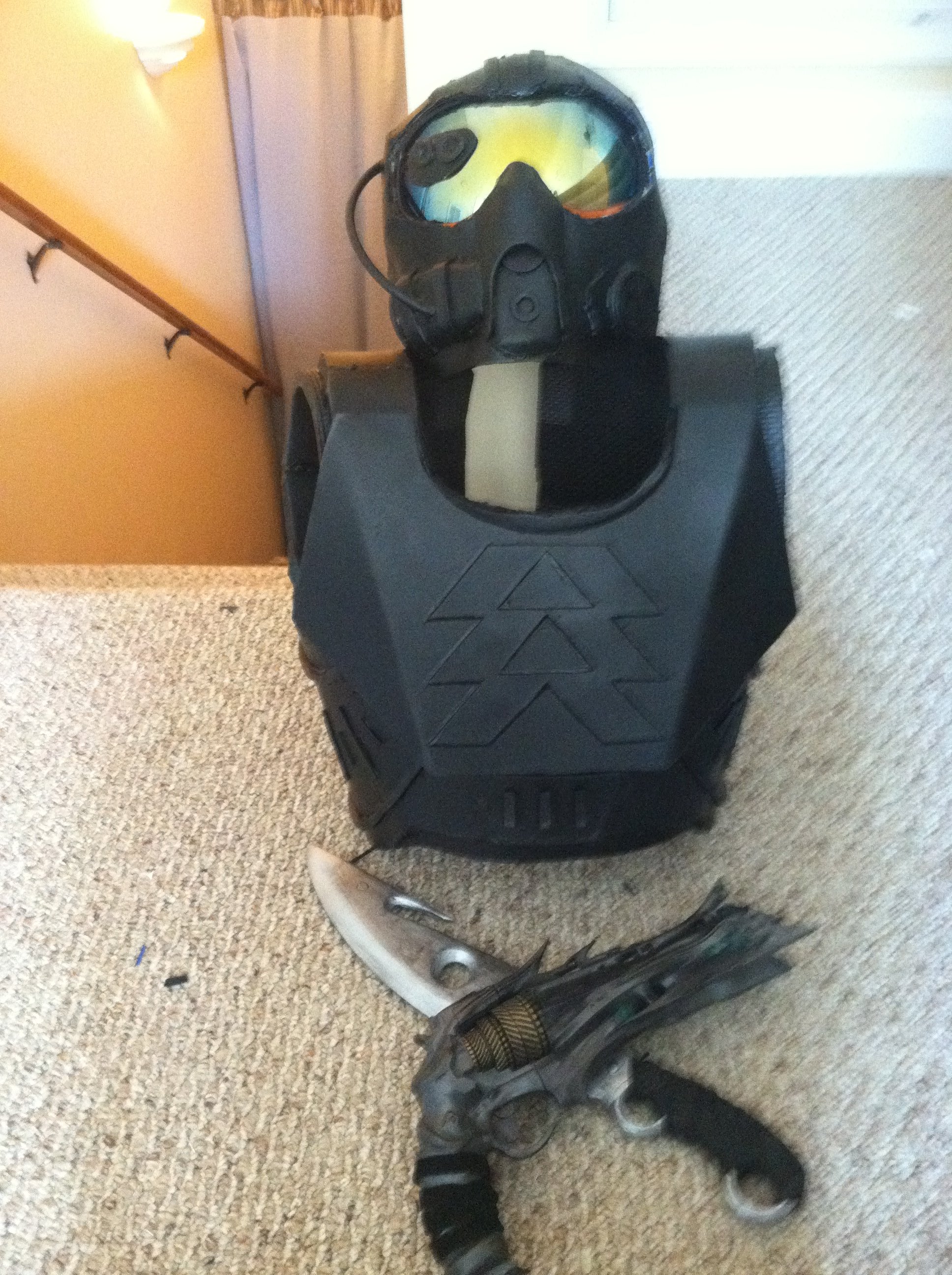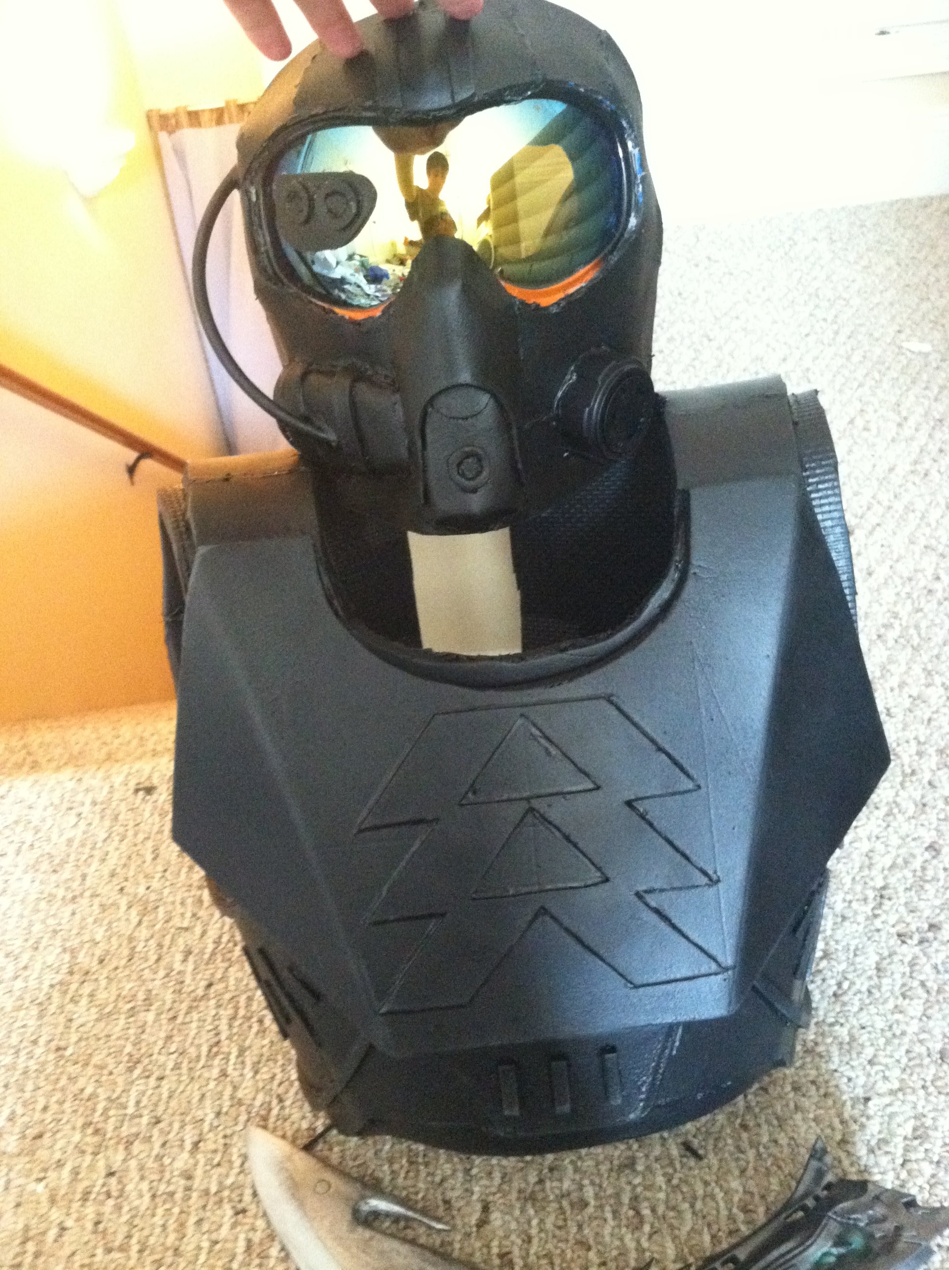 Double post like a boss. PROGRESS, YO! Got the chest and mask plasti-dipped. I'm still a little suspicious of the scale with that mask, though. Questions, answers, comments, concerns, criticisms, go!