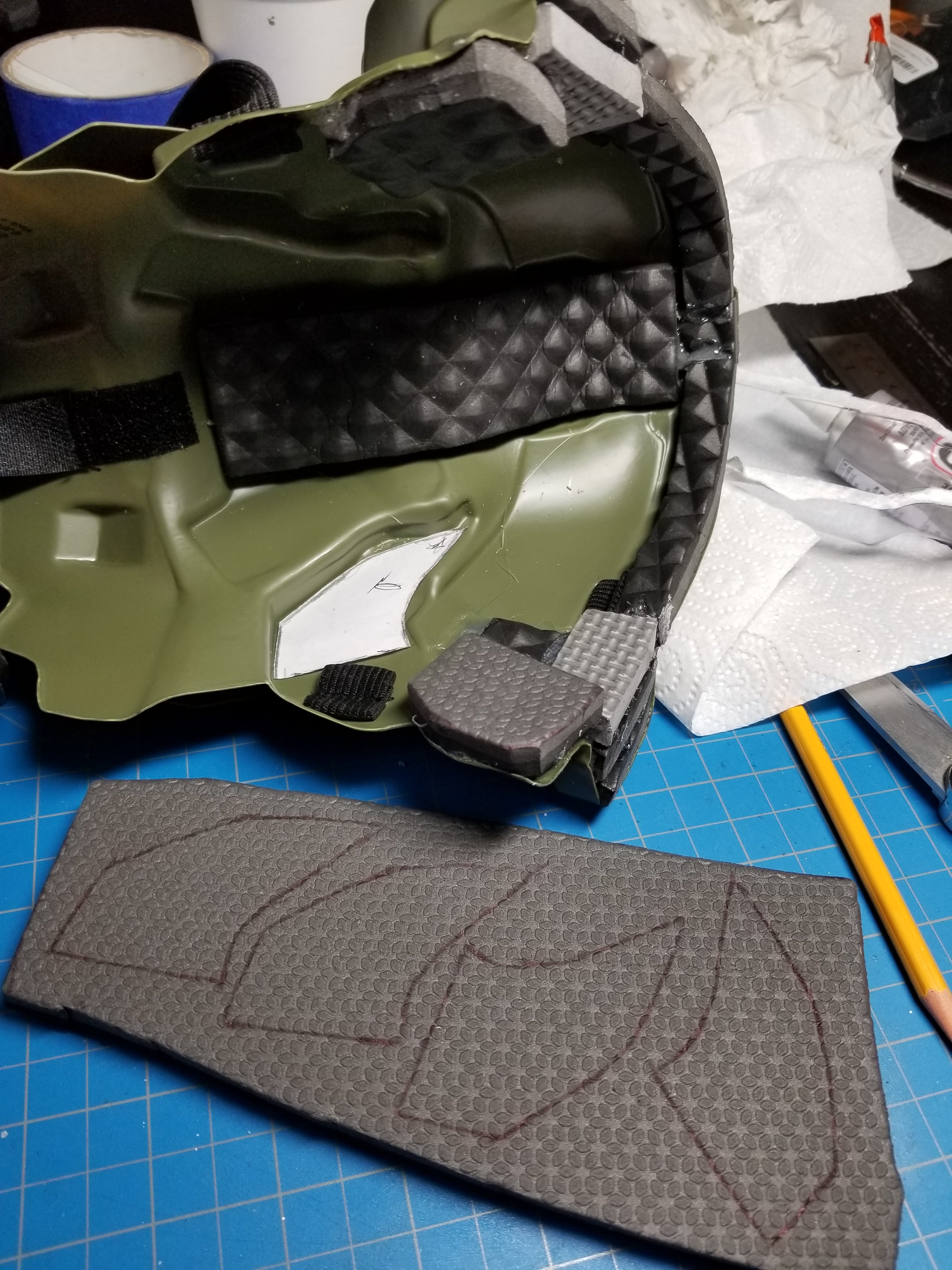 Head back to the knees, use the method in the first post to add some eva foam to level off the inside. I used 6mm. I believe one piece was 1.5cm x 4cm and the other was 3cm x 4cm.