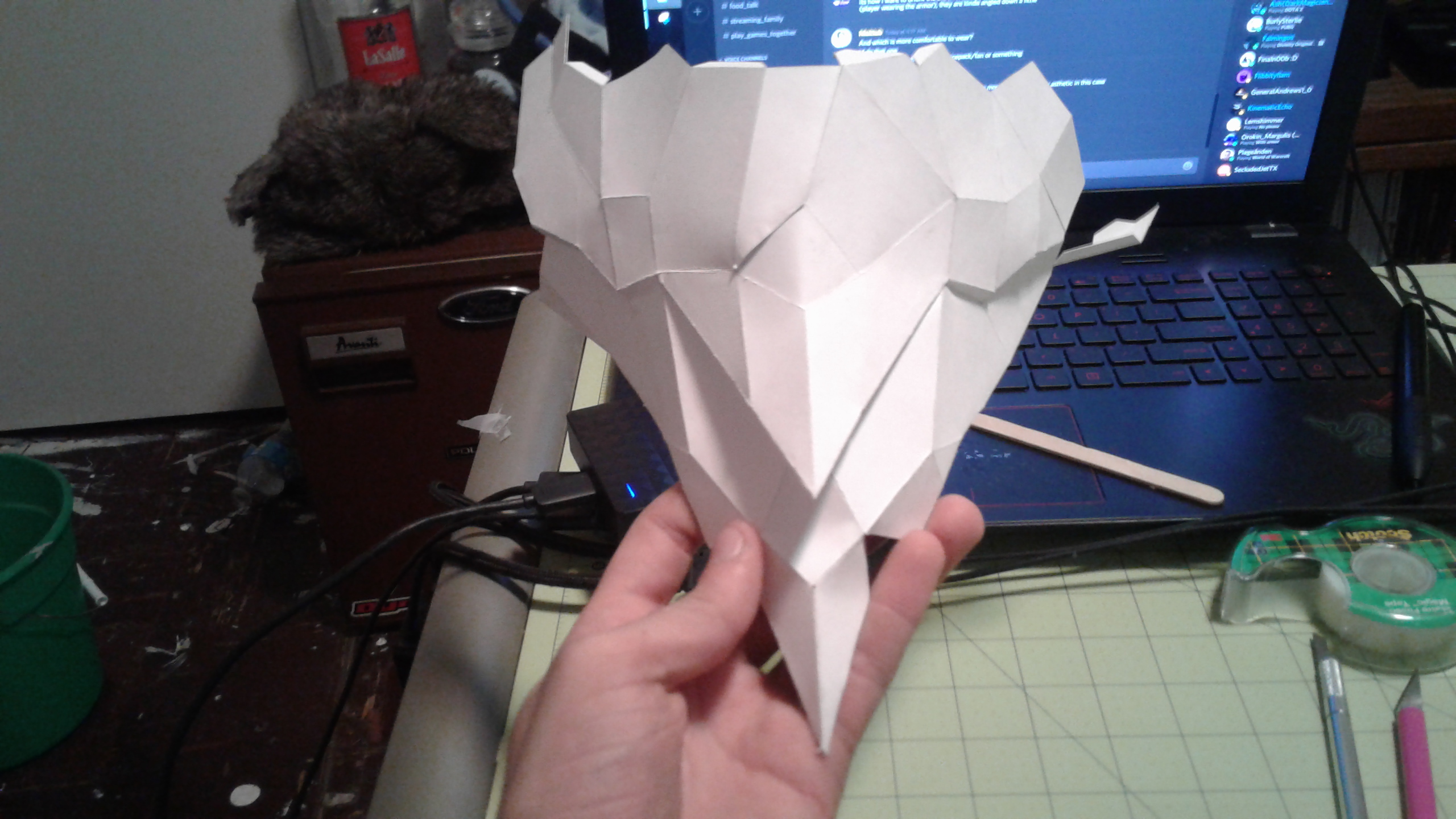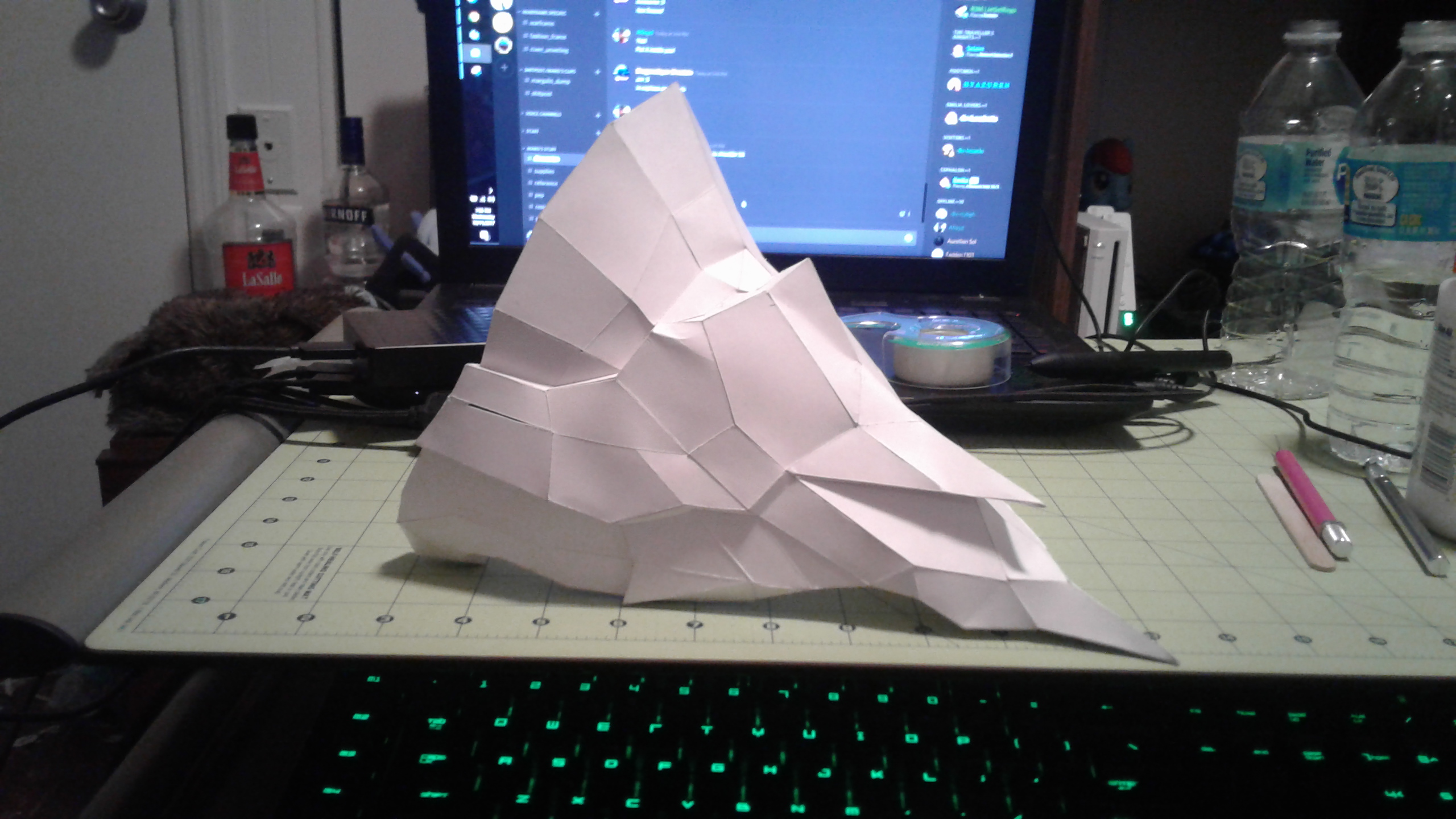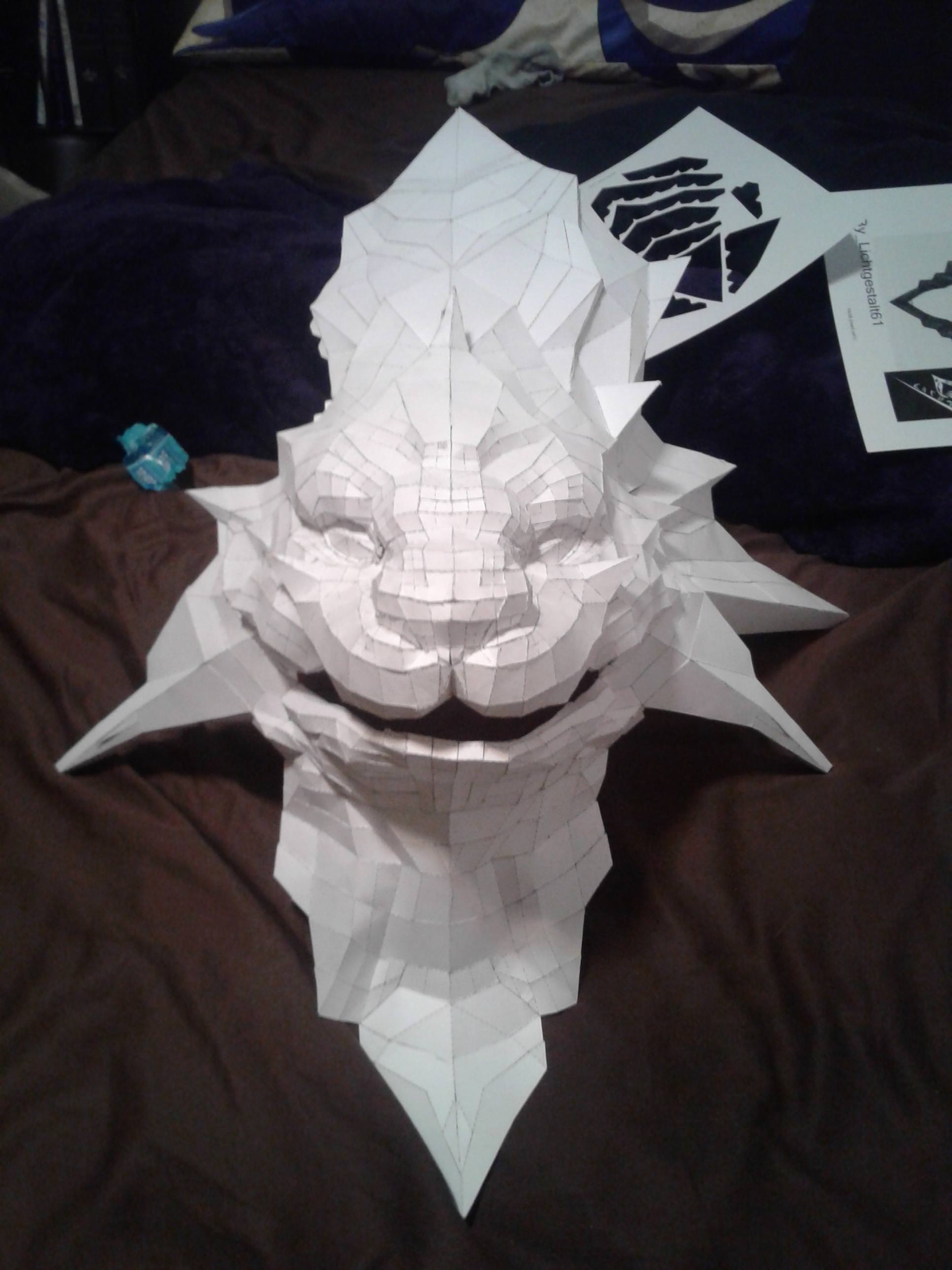 just dropping a quick update before i head to work, thought id have some fun with it and i might make a second one of these thats just the face up to the top of the helmet to make into a mask, and wear that as a less detailed helmet in certain places as well as just an accent piece.WIN_20171020_14_22_02_Pro.jpg