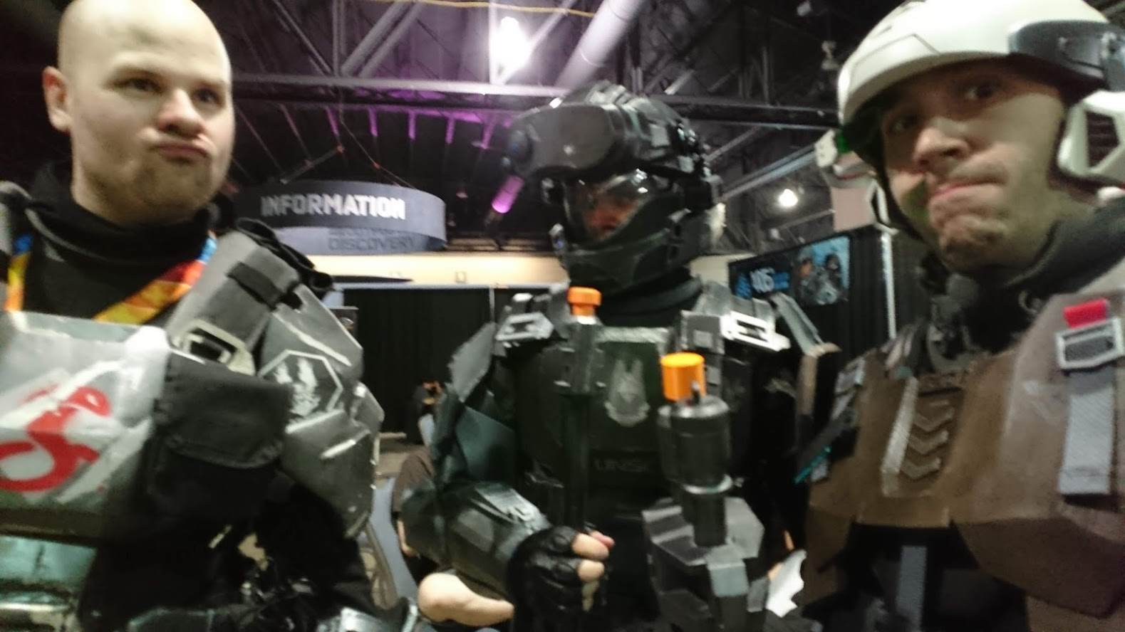 Question: Arcsol here is not a fan of cosplaying without a mask. He also doesn't like how he looks with sunglasses. We were left with, ODST helmet (I vetoed), the marine space helmet (not enough time to blaze that trail), or doing our own thing.