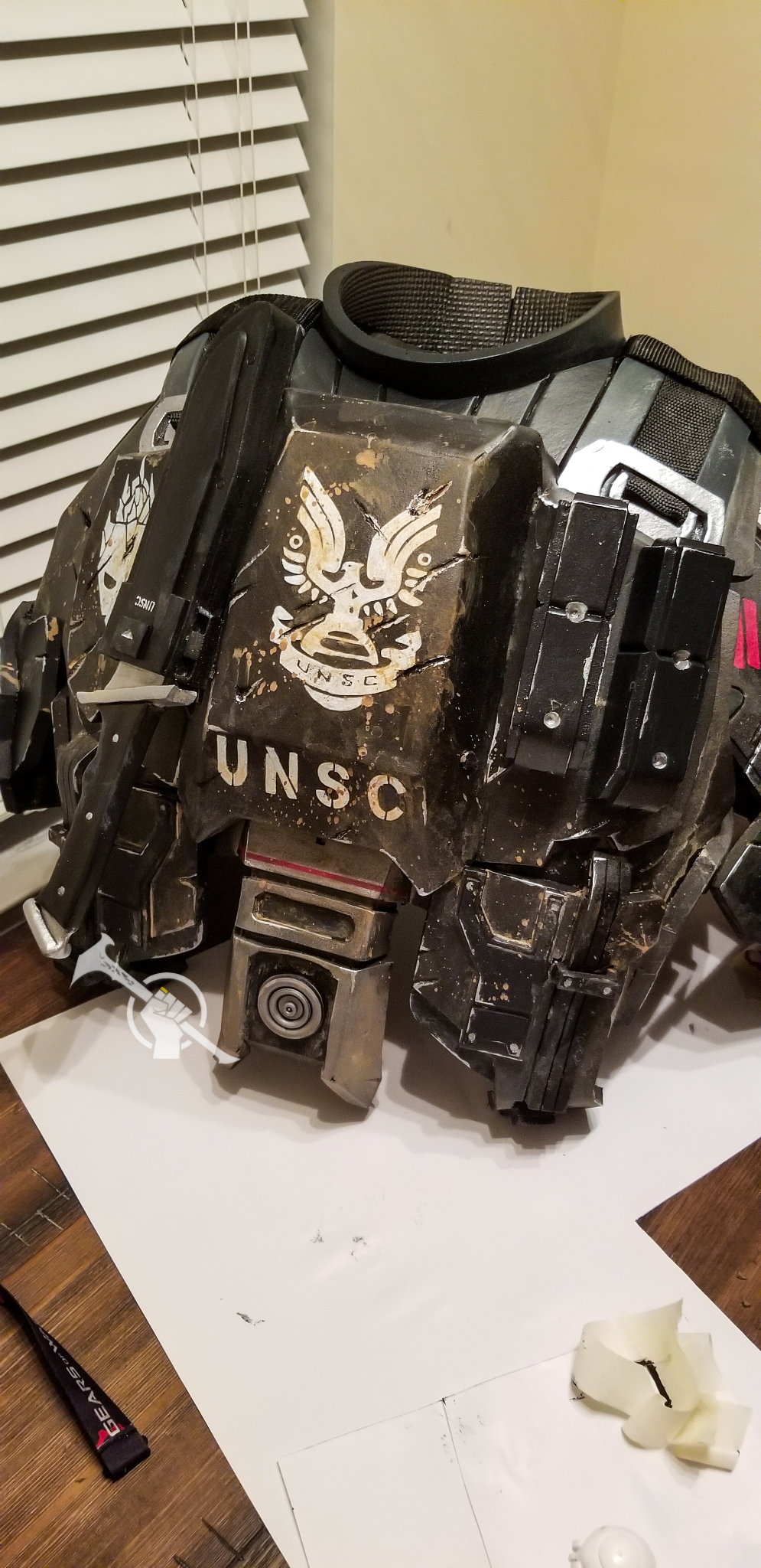I've been prop building for almost 10 years and Halo has always been a passion of mine. I've built quite a few suits but for this build I wanted to go as realistic as possible using EVA foam. I even casted parts for this build by making bucks out of Eva foam. This is my progress so far, on the paint scheme. It's Reach and Landfall inspired. I used the Halo Infinite logo on the chest because I didn't want to stencil 26 damn feathers, lol. Paints used are enamels and acrylics. I will have the whole build ready for Dragoncon, as I will be using this build in the parade. I will update as I complete more pieces and add in progress photos of the raw build later on.