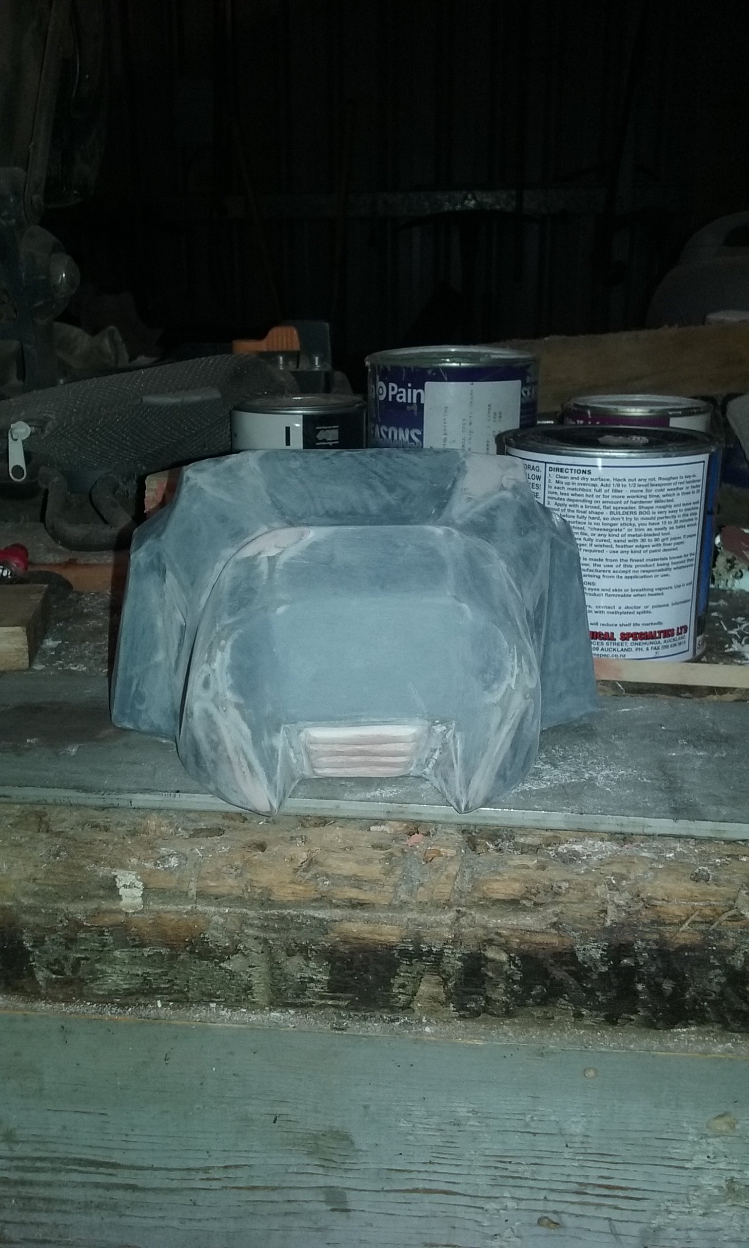 PS. I should definitely take the camera to the basement once... working on the forearm pieces, shins (sanding all and putting more stuff,etc.) and started hardening the right shoulder piece...