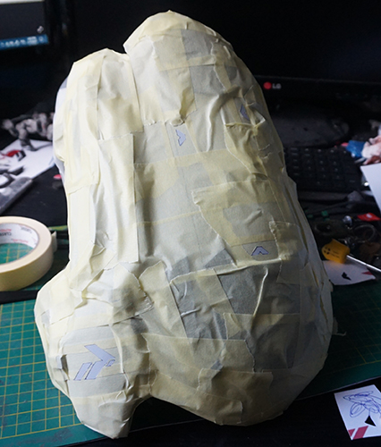Also I noticed that you have stenciled out the red parts do you do that while the tape is on the armour?