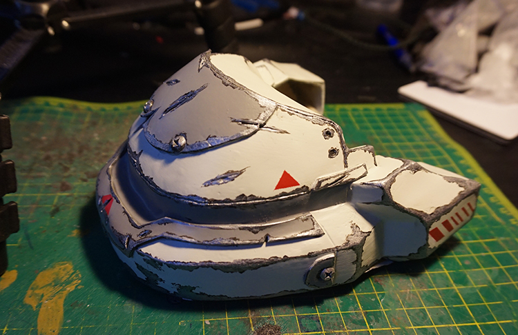 Yay, the right thigh is now all done and prepared for weathering and finishing. Working on left thigh and will start to strip down paint from shins too...