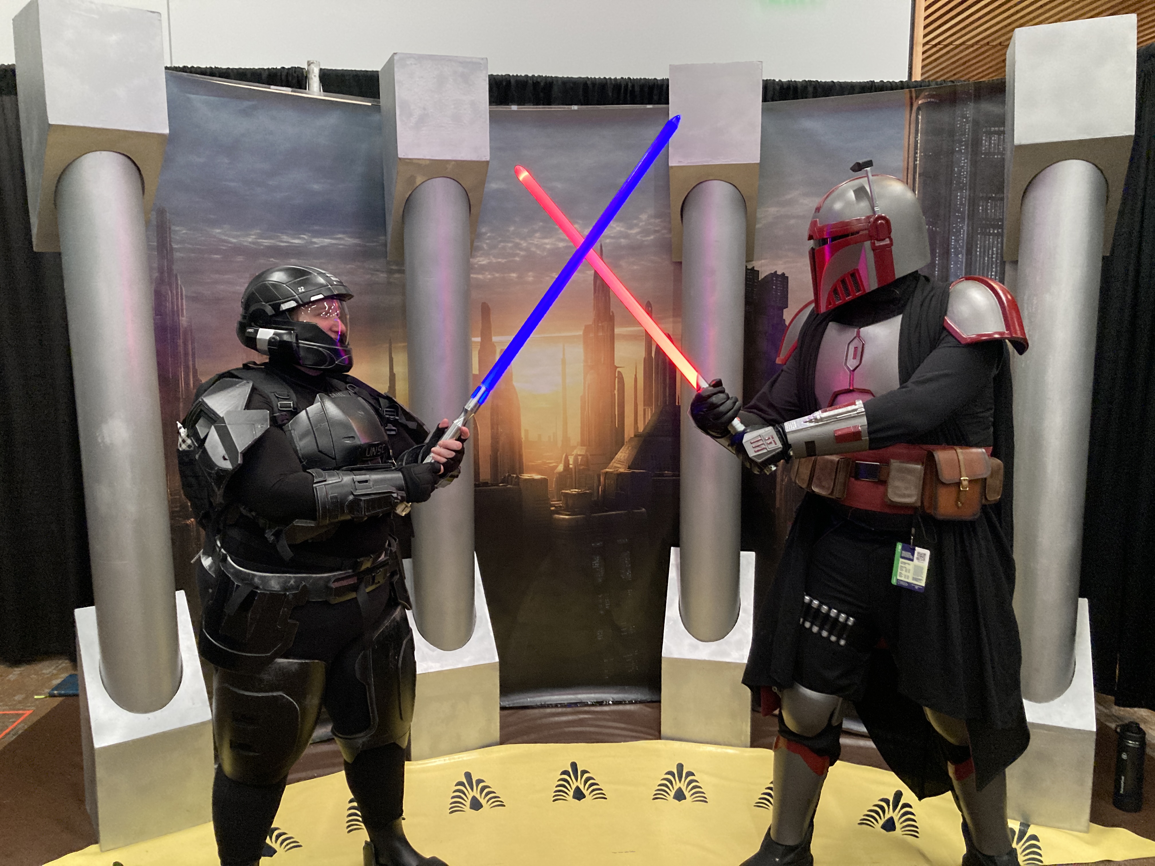 First time posting, welcome any feedback of how I can be doing better! Started my armor journey hoping to wear a full kit at Emerald City CC in March 2023. Was unaware of the 405th at the time and just kind of winged it. Used the template from Aguilar Workshop on Etsy and my brother (bless him) 3D printed, sanded and base painted the kit for me. The pic with the lightsaber is what I was able to pull together for ECCC 2023. We couldn't get the legs to fit right but was proud to wear what I could! We worked thru the summer and I attended my first meet up at Rose City CC 2023 (red background pic). We had all the pieces printed and even some detailing but a lot of it fell apart lol so more work needed. At that meet up I was introduced to the 405th by Kahn319 and have been lurking since. I was able to get some more detail and soft parts together for ECCC 2024 and was able to be in my first ODST group photo. After 18 months of trial and error and a lot of lurking in 405th threads I'm diving back in to hopefully have a re-made kit with a fresh look for RCCC 2024. In the next few months hoping to tackle a fresh paint job with upgrades to soft parts and infrastructure. Wish me luck!